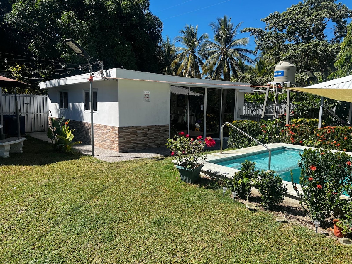 Uživajte u prekrasnom zalasku sunca na plaži Porodični smještaj u udobnom domu za odmor i izlazak iz rutine. Ranč ima 2 spavaće sobe opremljene klima uređajem, kuhinju-blagovaonicu s osnovnim priborom, unutra je kupatilo s WC-om Zajednički prostor: Bazen, 2 tuša vani, zelene površine, veliko parking mjesto, cosibo s visećim ležaljkama i kuhinja vani za pravljenje asada. Nalazimo se pored plaže, samo 2 minute hoda niz ulicu zajednice.