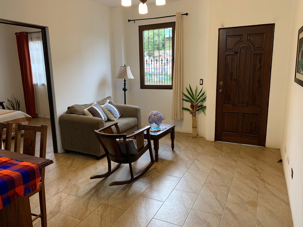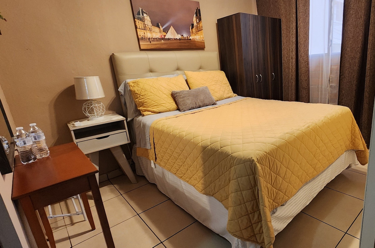 Mini apartman: 1 spavaća soba i dnevni boravak s klima-uređajem, Smart-TV- Kablovska, Wi-Fi 80 mbps, kuhinja, zajednički prostor za pranje veša, u sigurnom stambenom području. Nalazi se 45 minuta od aerodroma, 5 minuta hoda do tržnog centra Plaza San Luis, vojne bolnice i 15 minuta vozilom do Metrocentra. U okruženju je jednostavan pristup restoranima, supermarketima, apotekama, autobuskim uslugama, Nacionalnom univerzitetu itd. Uživajte u lijepom doživljaju u ovom smještaju koji se nalazi u centru grada.