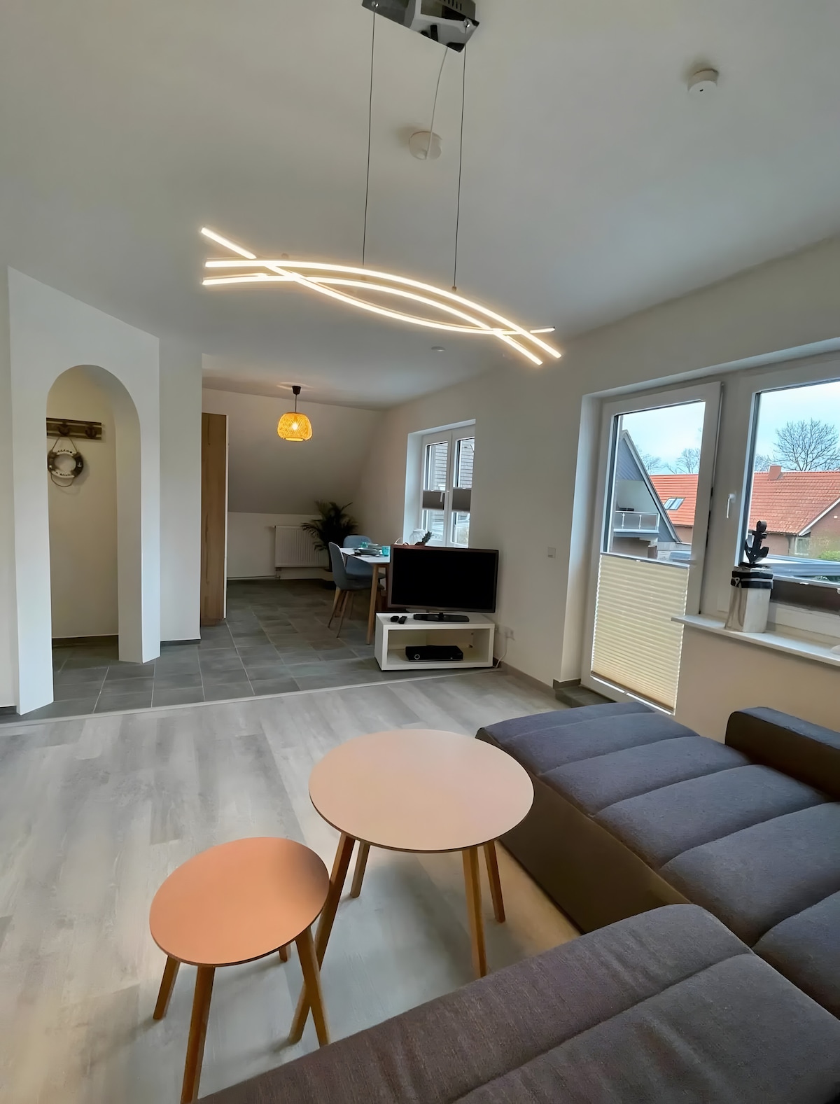 Stan je vrlo udobno namješten i moderno opremljen. Nalazi se na 1. spratu seoske kuće potpuno novoizgrađene 2011. godine usred polja - prirode i čistog mira. Oko 41 kvadratni metar nudi dovoljno prostora. Jedan državljanin je dobrodošao. Dostupni su pametni TV i brzi internet. Kuća je opremljena podnim grijanjem, a struju proizvodi solarni sistem. Potražite i naš stan Rüm Hart u prizemlju