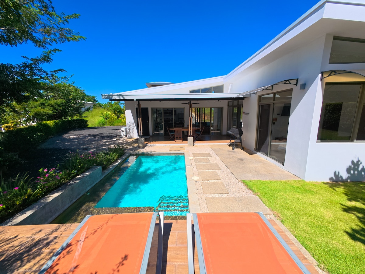 Casa Mélamar, a stunning 3-bedroom, 2.5-bath retreat nestled in the serene hills of Marbella, just 1 hour from downtown Santa Cruz. Perfect for couples, small groups, or remote workers. Privacy, comfort, and nature with a touch of Costa Rican luxury. → Private Pool & outdoor plunge tub → Potable water treatment system → Gated community with security → Self check-in → Air conditioning → Free parking → WIFI, Smart TVs → Indoor/Outdoor shower & bathtub → Indoor outdoor living, mosquito net