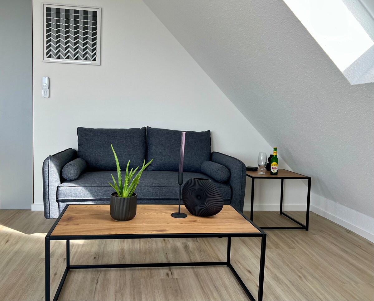 Pristupačan, svijetli jednosobni stan nalazi se u blizini željezničke stanice i nudi vam savršenu polaznu tačku za aktivnosti. Do šetališta Rajne možete doći za nekoliko minuta pješice. Stan je s ljubavlju namješten i sadrži sve što vam je potrebno za udoban boravak, npr. veš mašinu, sušilicu, peglu. Dostupno je privatno parking mjesto, kao i šupa za siguran smještaj vaših bicikala. Kupovina (Aldi) dijagonalno nasuprot
