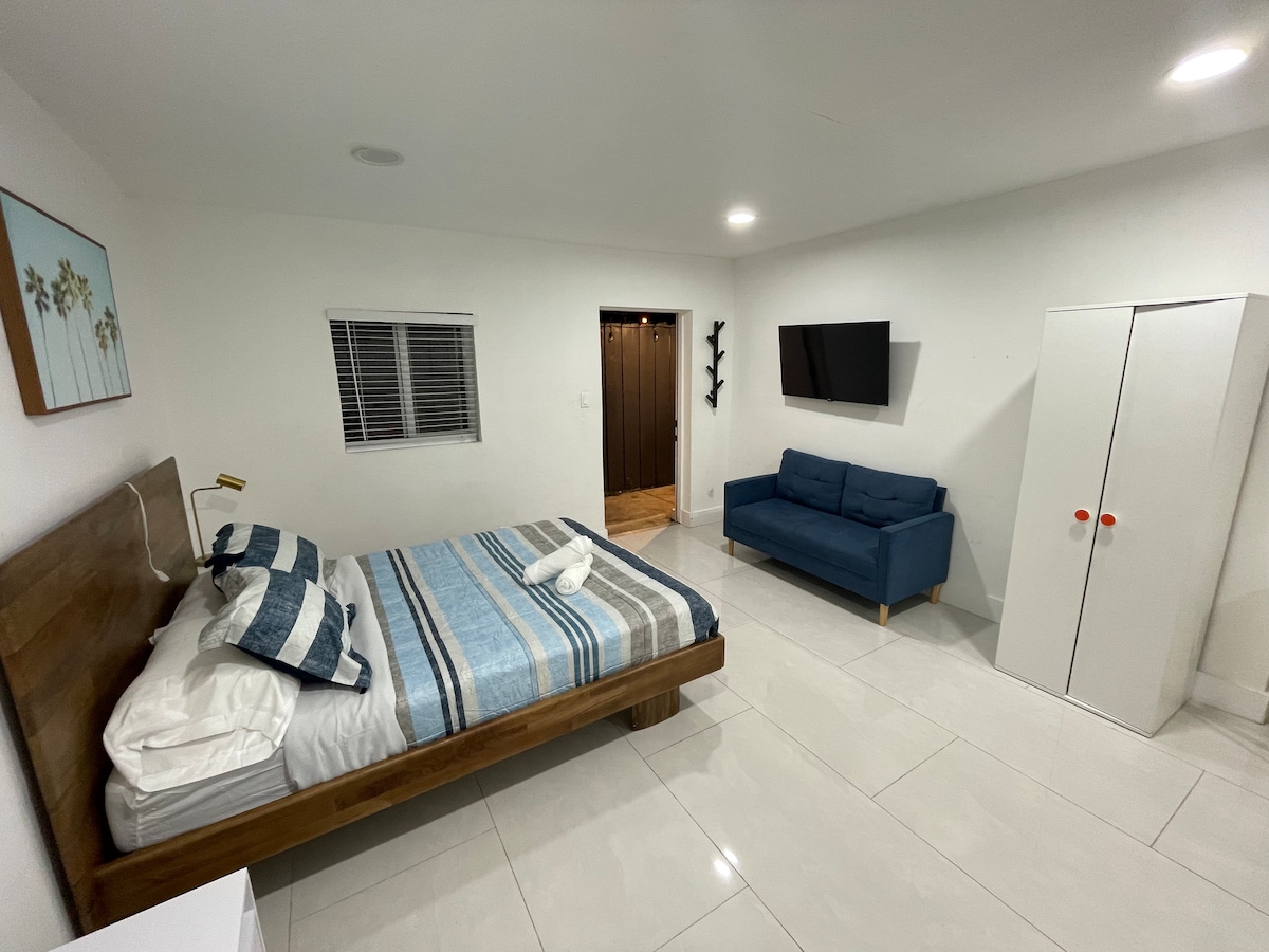 Naša privatna i udobna Hallandale Guesthouse se nalazi u centru grada u blizini svih glavnih atrakcija i dolazi opremljen sa svime što je potrebno za uživanje u vašoj posjeti So. FL. Radite i putujete? Iskoristite prednosti našeg radnog prostora, stolice za rad, štitnika za prenapona, pametnih svjetiljki i BRZOG Wi-Fi mreže. Privatni parking i ulaz bez ključa, digitalna brava bez ključa za samostalni dolazak. Potpuno opremljena kuhinja i kafić za obroke i kofeina. Obližnje plaže, aerodrom Ft Lauderdale, Hard Rock, Gulfstream Park i još mnogo toga.