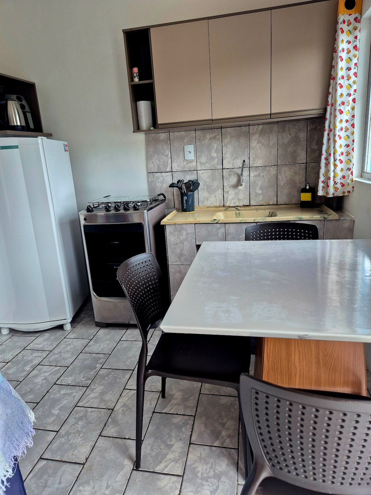 Apartman , prostor s krevetom od 18 m2, malom kuhinjom, klima uređajem, savršen za parove ili male porodice sa svim sadržajima i udobnošću koju dobar odmor zaslužuje, prekrasnim izgledom, brzim internetom, pametnim TV-om s pretplatom na Netflix i Globoplayom. Nevjerovatno mjesto s šetalištem i biciklističkom stazom ispred. Spavajte uz valove i probudite se uz predivan izlazak sunca Dođite i upoznajte se!!!!! napomena: Ne primamo kućne ljubimce!!!! Počevši od marta, najam može biti mjesečni, za periode, kontaktirajte putem poruke.