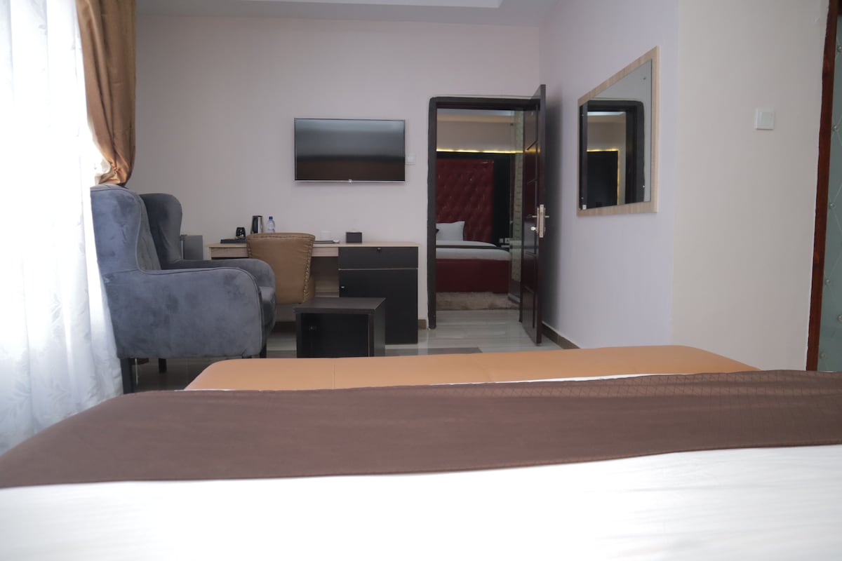 Boasting a bar, shared lounge and views of city, Nue Crest Hotel is situated in Enugu, 14 km from Ngwo Pine Forest. Among the facilities of this property are a restaurant, a 24-hour front desk and room service, along with free WiFi. All rooms in the hotel are fitted with air conditioning, a seating area, a flat-screen TV with satellite channels, a kitchen, a dining area and a private bathroom with free toiletries, a bath and a hot tub. The rooms will provide guests with a desk and a kettle.
