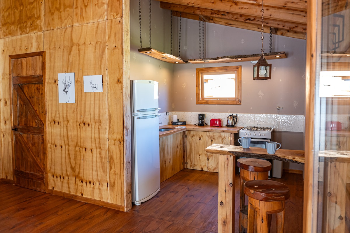 Uživajte sa svojom porodicom u našim boutique divljim brvnarama, La Cabaña del Huemul je izuzetno prostrana, udobna i elegantna, može primiti do 6 osoba i ima privatnu galeriju s visećom ležaljkom i dnevnim boravkom. Detalji, od dekorativnih do infrastrukture, čine veliku razliku. Vrhunski madraci, posteljina i peškiri, fage grupa, termotant visokog oporavka. SATELITSKI INTERNET JE UKLJUČEN. Napunite energiju i doživite nezaboravan odmor.