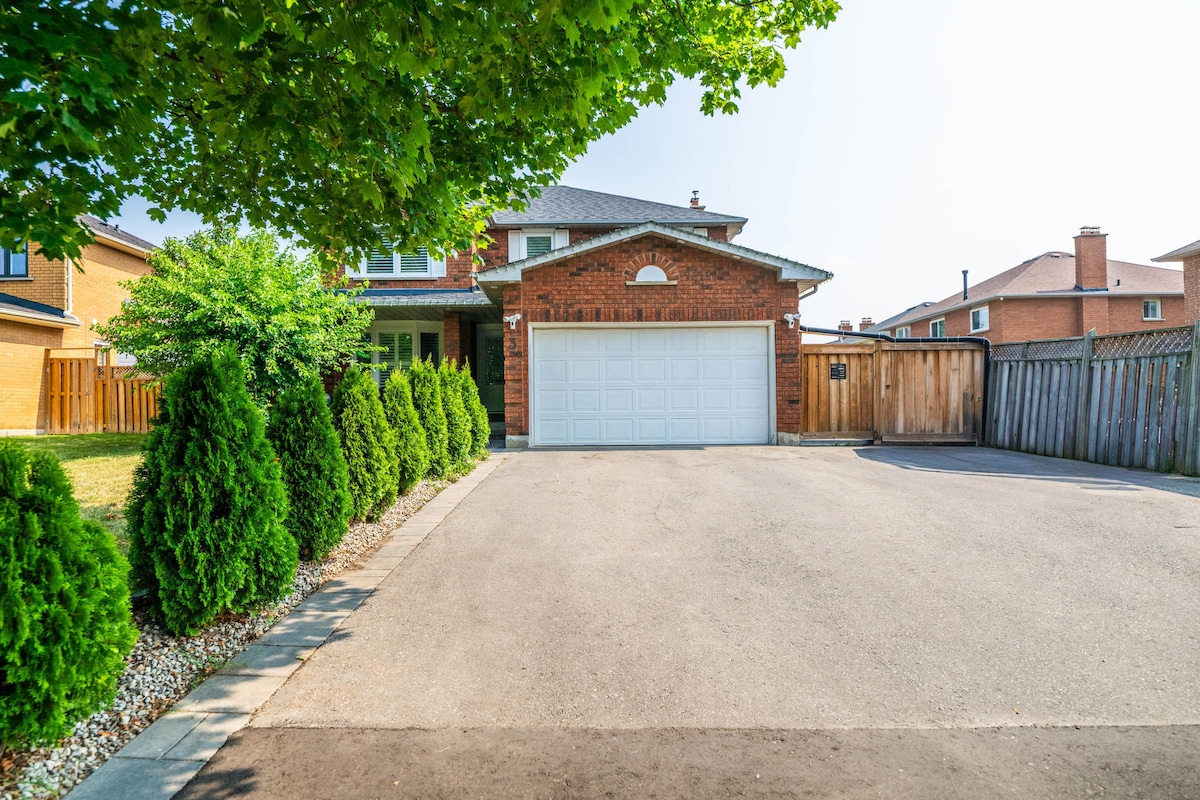 Zaboravite na brige u ovoj prostranoj, mirnoj i jedinstvenoj kući! Veliko stražnje dvorište s spa centrom za plivanje u kojem možete uživati! Stražnje dvorište ispunjeno kaminima! 6 spavaćih soba, 7 kreveta, 4 kupatila, 4 kancelarije, 3 porodične sobe, 9 TV-a, opremljena kuhinja, terasa, društvene igre, roštilj, kamin, Tesla punjač. Mirno, ali centralno od centra Oakvillea, autoputevi, namirnice, šoping, barovi, restorani, kafići i još mnogo toga! Uvijek profesionalno očišćeno. Za starije goste spavaća soba i kupatilo su u prizemlju.