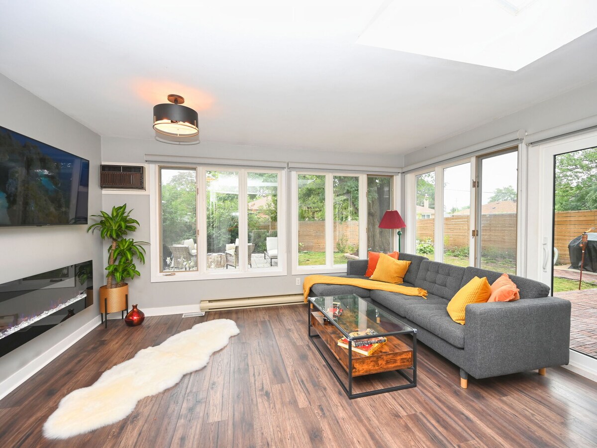 Dobro došli u „The Scholar”, svijetli, potpuno renovirani podrumski apartman s 1 spavaćom sobom samo 10 minuta od aerodroma Pearson. Inspirisana šarmom studentskog života sa svim nadogradnjama moderne udobnosti, ova jedinica ima potpuno opremljenu kuhinju, udoban dnevni boravak, privatnu spavaću sobu, elegantno kupatilo i vešeraj u apartmanu. Idealno za samostalne putnike, parove ili duže boravke, s jednostavnim pristupom lokalnom prevozu, restoranima i prodavnicama.