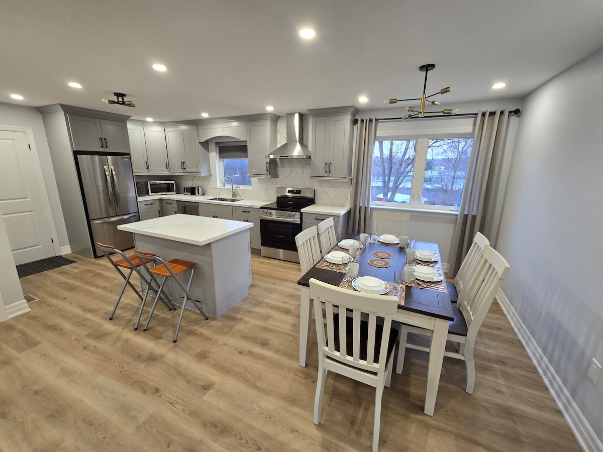 Uživajte u svom privatnom životnom prostoru u renoviranom dvojnom stanu na donjem spratu. Odlična lokacija, u blizini centra grada, autoputeva, voza, autobusa. Jednostavna vožnja do Toronta. Odličan prostor za različite posjetioce. ❗NAPOMENA!! Živimo na gornjem spratu s dvoje aktivne djece i psom. Ponekad se djeca igraju. Ne preporučujemo prostor onima koji traže potpunu tišinu, iako dajemo sve od sebe da bude tiši. Nadamo se da ćete uživati u boravku!