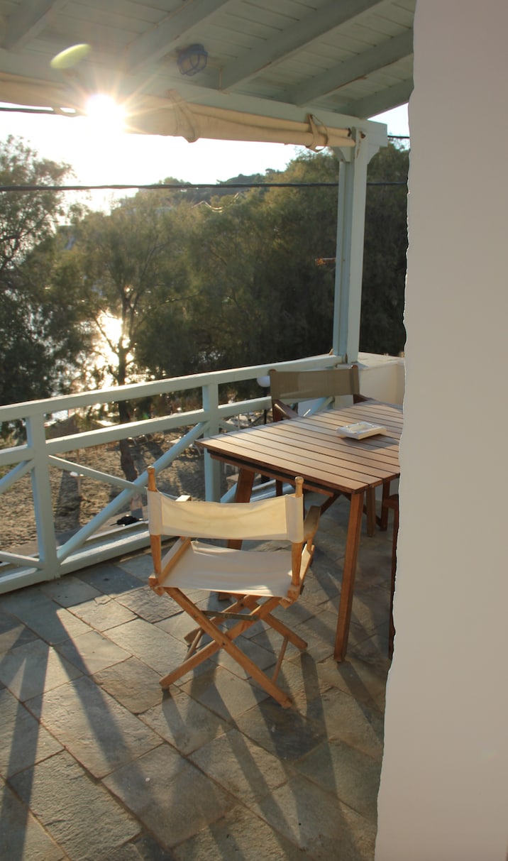 Otvorite vrata balkona, udahnite egejski zrak i uživajte u beskrajnom plavom. Trajekti za luku dolaze unutar „dodirivanja” udaljenosti, jer krajolik upotpunjuju ostrva Tinos i Mykonos. Stan se nalazi odmah iznad jedine plaže u gradu (Asteria), pored slikovitog područja Vaporia. Samo 10 minutahoda će vas odvesti do centra grada, prolazeći pored impresivnog Ag. Crkva Nikolaos i zapanjujuće pozorište Apollon. Na kraju, pobrinite se da barem jednom stignete na izlazak sunca!