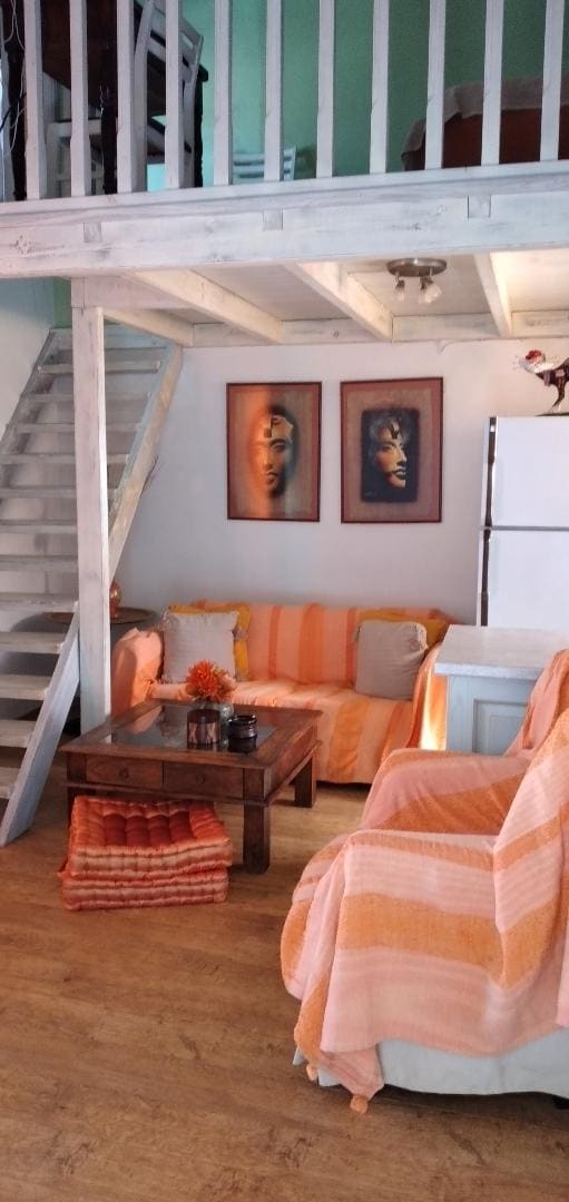 „Syra kai ela” je studio-loft koji se nalazi na drugom spratu privatne rezidencije s 2 velike terase u srcu Ermoupolisa. Sastoji se od dva nivoa od ukupno oko 40 m2, potpuno opremljen. Nalazi se samo 7-9 minuta od historijskog centra Ermoupolisa, tržnice i luke, u području Pefkakije gdje se može pronaći parking . U neposrednoj blizini se nalazi mini tržnica, steakhouse. Otkrijte pejzaž koji okružuje ovaj smještaj.
