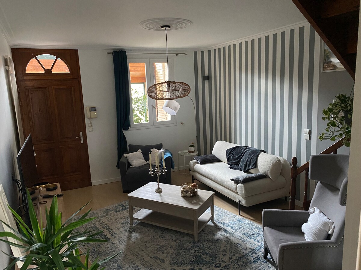 Naš smještaj se nalazi na brežuljku Marmandais 3 min vožnje od centra i 2 minute od supermarketa . Vrlo prostran parking. Utočište mira koje se nalazi u vinogradu XIX ° na jednom spratu. Pored toga što su vlasnici, ovaj smještaj ostaje vrlo nezavisan . Netflix , Canal+ , Vrlo brza vlakna omogućavaju TV rad Natkrivena terasa, 2 spavaće sobe , udobni kreveti 140, kupatilo , WC , retro kuhinja s besplatnom pećnicom u prirodi,stolni tenis, bazen , životinje