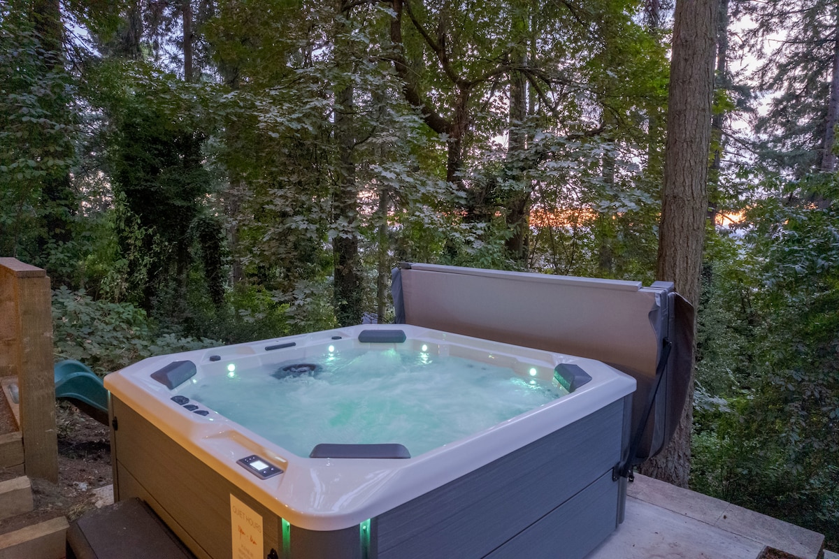 Spokoj, privatnost i praktičnost u ekskluzivnom Eugene South Hillsu. Smješten u krošnjama drveća, a još nekoliko minuta do U Oregona/centra grada/I-5, ovaj 3 nivoa 900+ kvadratnih metara poseban apartman za goste ima privatni ulaz, zidove prozora, kamin na drva, vanjsku hidromasažnu kadu, bračni krevet, Wi-Fi, kablovsku/Netflix, samostalni dolazak/odlazak, ulaz bez ključa, novi HVAC i maserku. Ovo je broj1 Airbnb u Eugeneu koji se koristi za medene mjesece, odmore i muzički video.