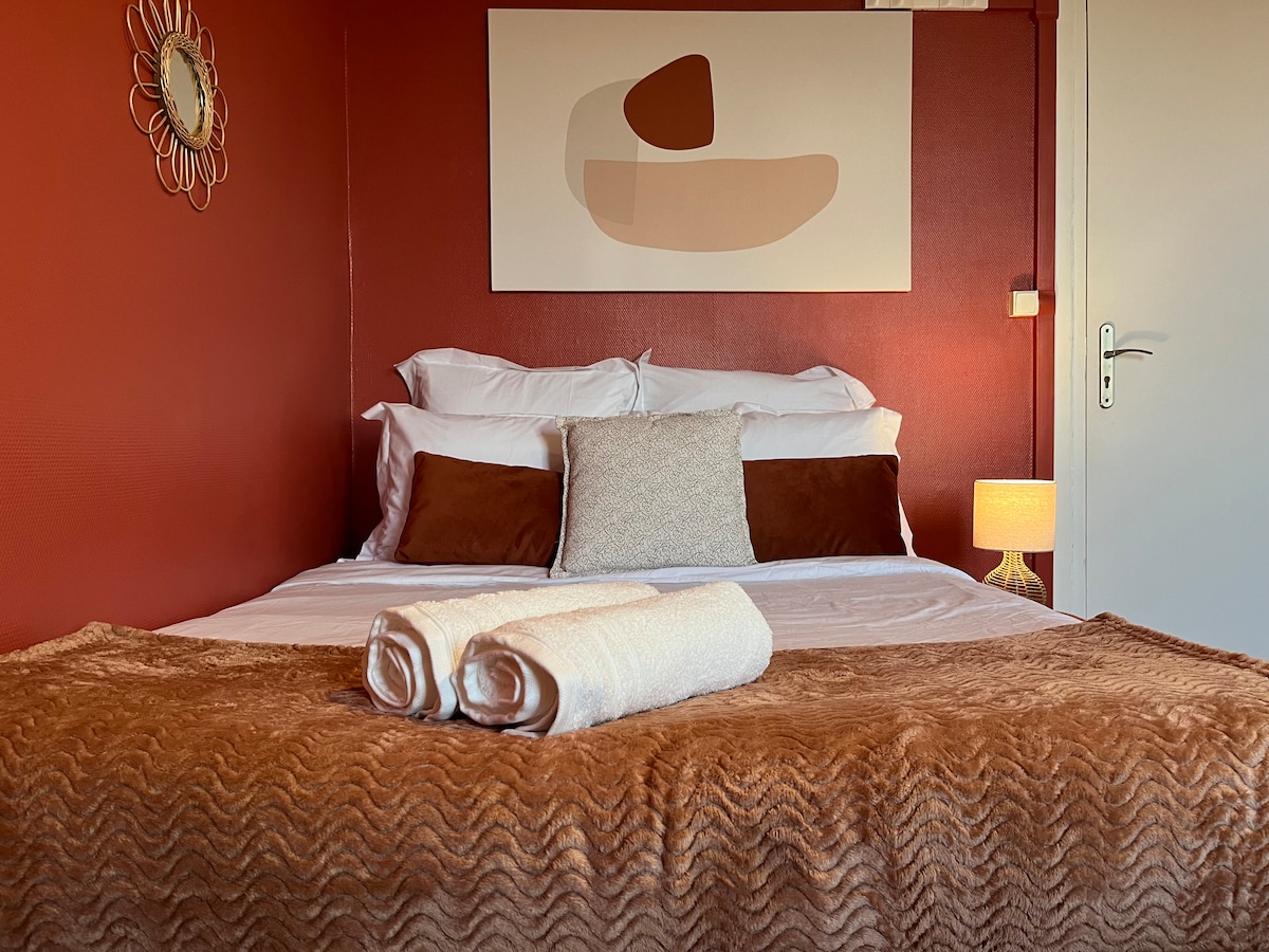 Boravite u srcu Évreuxa u elegantnom stanu s oker nijansama, idealno smještenom 2 minute od željezničke stanice i nekoliko koraka od historijskog centra. Uživajte u prekrasnom pogledu na grad i katedralu, rijetkim visinama stropa i modernoj udobnosti dizajniranoj za vaše opuštanje. Vrhunska posteljina, brzi Wi-Fi i potpuno opremljena kuhinja vas čekaju za nezaboravan boravak, bilo za rad na daljinu ili istraživanje grada.