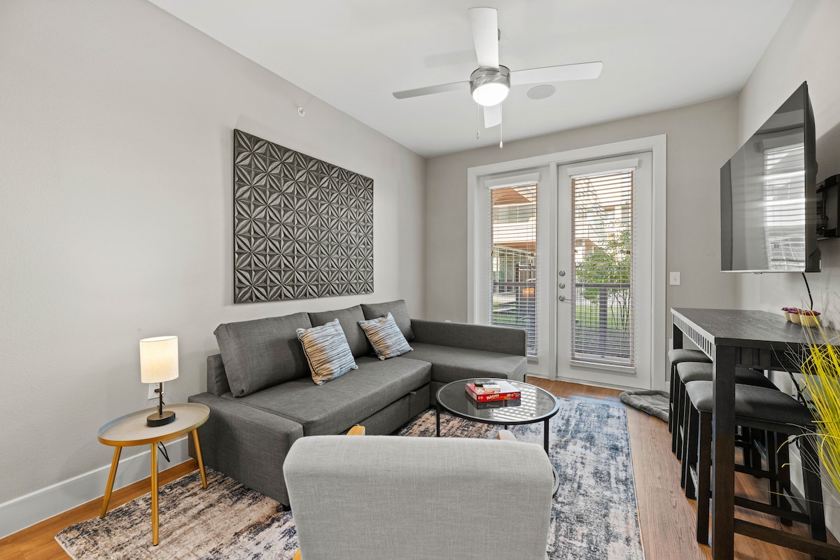 Boravite u elegantnom, modernom smještaju s jednom spavaćom sobom, udaljenom samo 2 minute od trga Sundance u srcu Fort Wortha. Uživajte u predivnom pogledu na centar grada, terasi na krovu sa stolom za bilijar, teretani, ognjištu i prostorima za opuštanje. Ova nova stambena zajednica nudi sigurno i tiho okruženje s besplatnim parkingom i perilicom/sušilicom u stanu. Savršeno za poslovne ili turističke putnike koji traže stil, udobnost i nenadmašnu praktičnost.