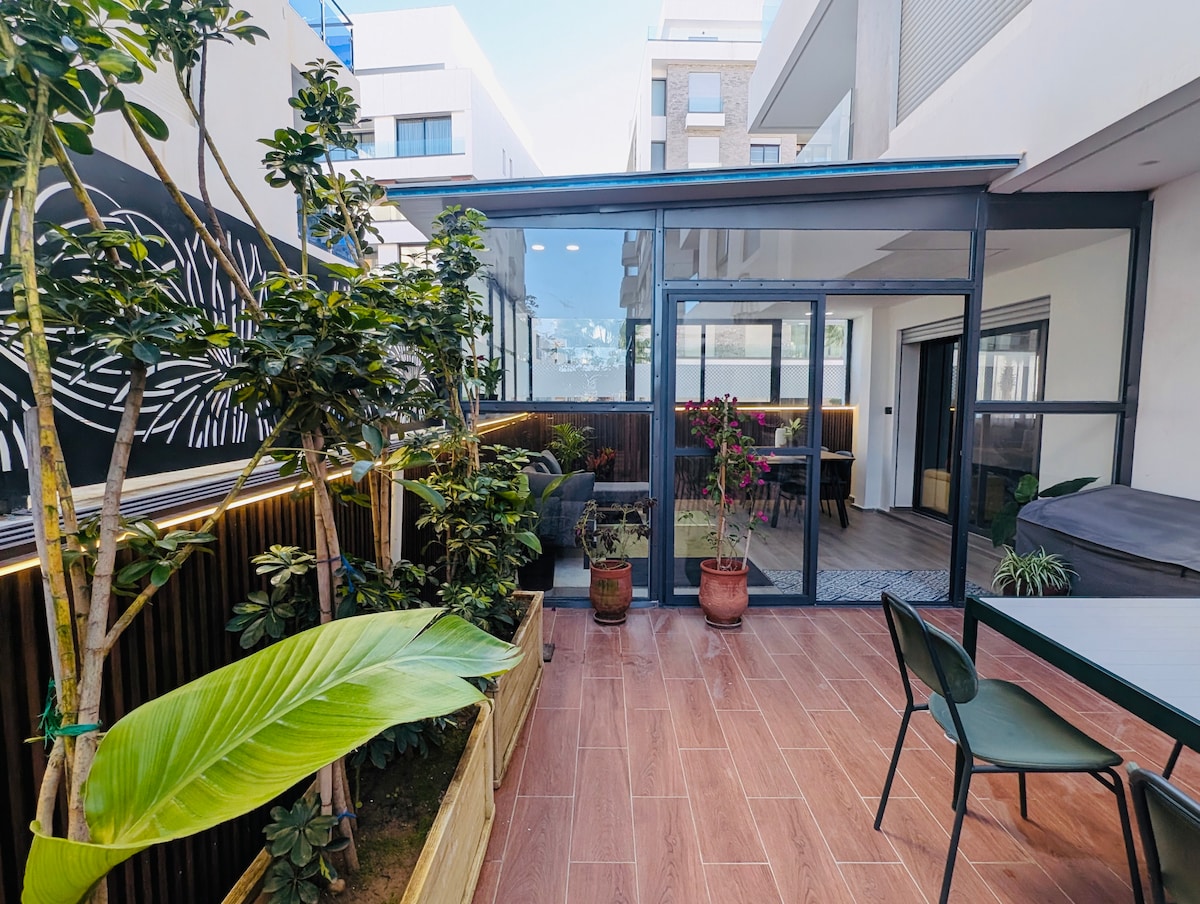 Od trenutka kada uđete, atmosfera je meka i gostoljubiva. Prirodno svjetlo ispunjava prostor, savremeni dizajn vas poziva da dišete, a svaka soba je osmišljena za udobnost. Otvorena terasa s pogledom na brda i tihi, moderni enterijer stvaraju savršeno uravnoteženo utočište, blizu plaža, kafića i energije Malabata. Smiren, moderan dom za usporavanje, punjenje baterija i uživanje u Tangieru vlastitim tempom.