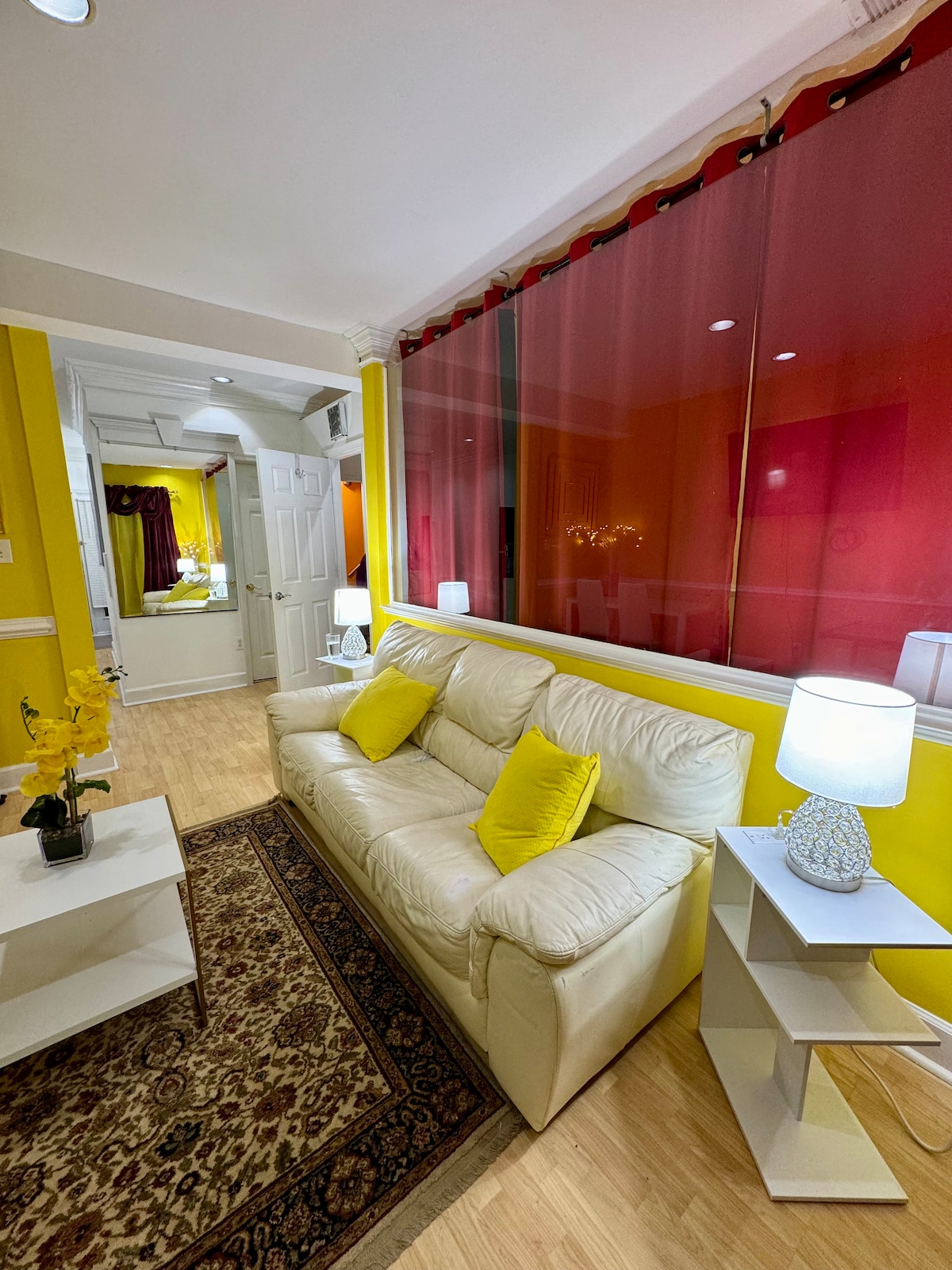 Welcome to our stylish basement apartment, perfect for modern travelers. Whether you're here for work or leisure, this space has you covered. Situated minutes from the Metro, Airport, and major work centers. The apartment features a desk with dual monitors, keyboard, mouse, and 1GB internet. At night, relax in the plush king-size bed. A convertible futon couch with a 65-inch TV, awaits your binge-watching sessions. A washer/dryer and full kitchen, w/refrigerator and stove complete the space.