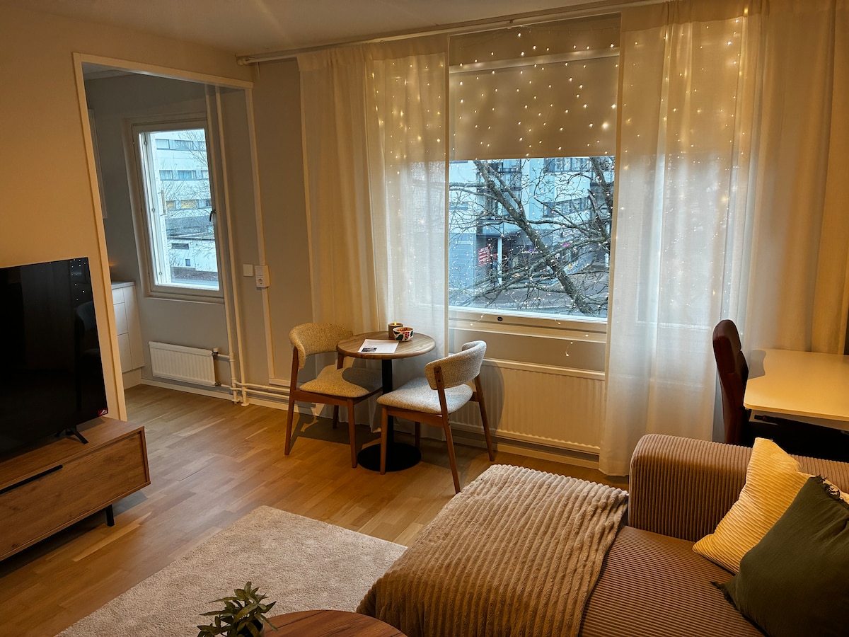 Uživajte u svježe renoviranom studiju od 30 m² na savršenoj lokaciji! Željezničke i autobuske stanice, trgovina namirnicama i pizzerije su odmah pored, a centar Helsinkija i aerodrom udaljeni su samo nekoliko minuta vožnje vozom. Stan ima 65-inčni OLED TV, PlayStation, podesivi radni stol, ugaonu sofu, Wi-Fi, aparat za kafu, mikrovalnu pećnicu i novi bračni krevet. Kuhinja i kupatilo su nedavno renovirani. Primopredaja ključa je beskontaktna. Kafa, peškiri i posteljina su uključeni. Udoban i praktičan smještaj!