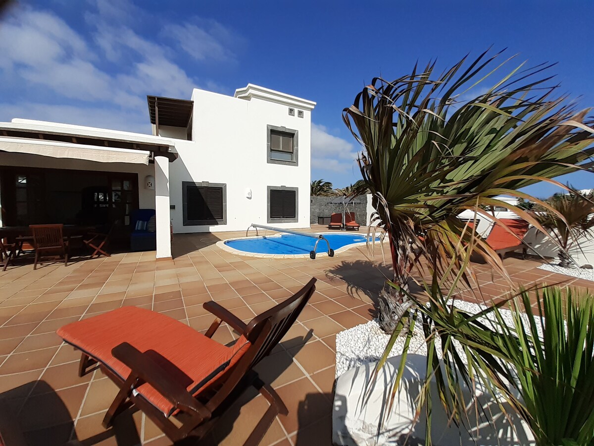 Our house is close to the sea, beaches and the bus stop, where you can catch the bus that takes you to Playa Blanca in 5 minutes. It is the perfect place for relaxing holidays for couples or families with kids, and a wonderful temperature also during winter. The outdoor patio is well protected against the wind. The house is fully equipped with TV, WiFi, barbecue, heated swimming pool, and furnished as comfortable as possible, as this is where we spend our holidays, when we come to Lanzarote.