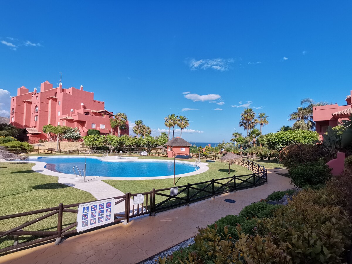 🌞 Just 2 minutes from the beach, perfect for families or couples looking to relax and enjoy the sun. 🛏️ Sleeps 4: double bed, single bed and sofa bed. 🍽️ Open-plan space with kitchen, living and dining area. Smart TV for Netflix and new A/C. Dining room in a closed balcony with beautiful sea views 🌊. 🏊♀️ Shared pool, tennis courts and self check-in. 🧼 Kitchen with dishwasher and bathroom with washing machine.