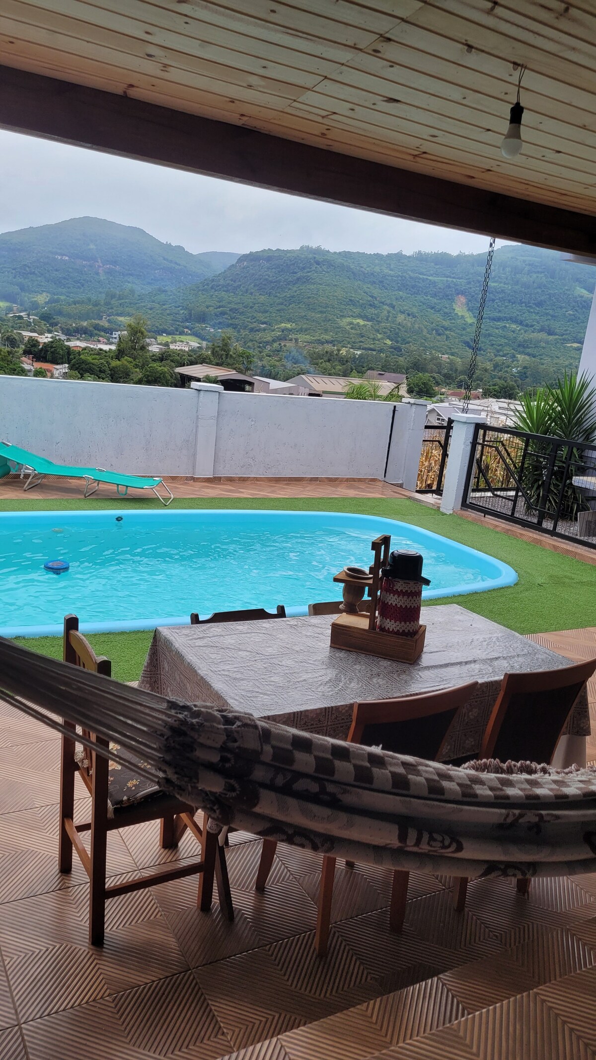 Espaço inteiro com churrasqueira, cozinha toda completa,sala de estar smart tv, 1 quarto, 1 cama de casal 3 de solteiro, wifi , ar condicionado, Pátio privado com estacionamento, 1km do centro e parque municipal de feliz, Pátio cercado para pets..ótima localização e de facil acesso.. aluguel de espaço apenas no primeiro piso.. nao é a casa toda. Ja conheçe nossa outra hospedagem? @cabanas_alto_feliz