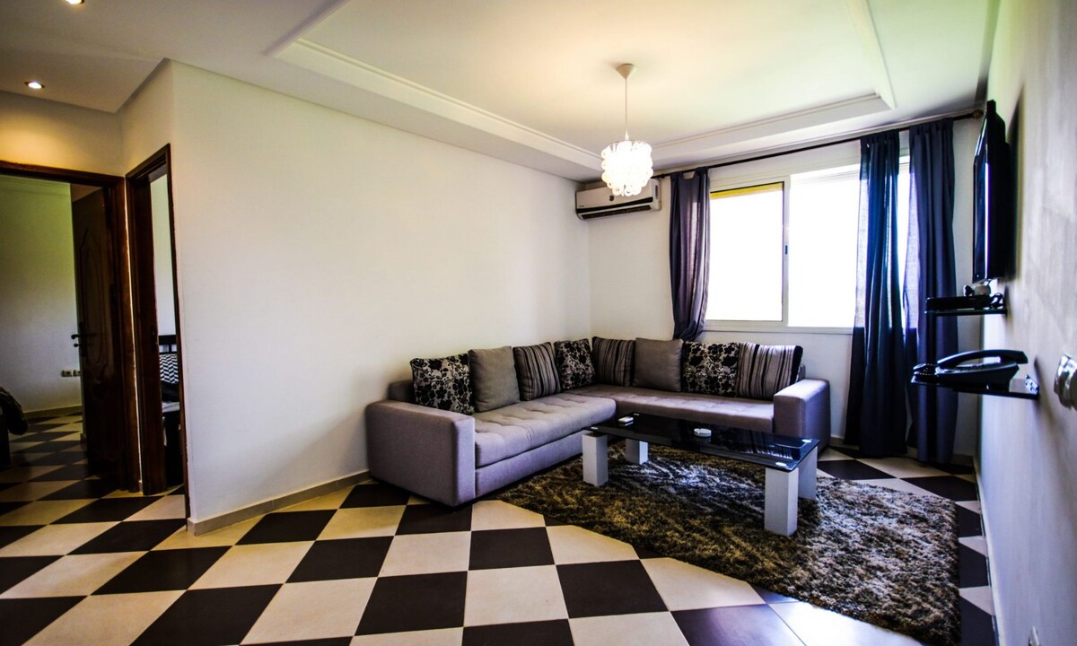 Stan s 2 spavaće sobe i 2 kupatila u jednom od najboljih kvartova u Fezu. Svijetli dnevni boravak s trpezarijom, dnevni boravak s velikim kaučem i Netflix TV-om, potpuno opremljena kuhinja i balkon koji gleda na ulicu. Uključen je brzi Wi-Fi preko optičkih kablova. Samo 2 min od restorana kao što je Blanco, u blizini Medine, centra grada, stadiona i aerodroma. Udobnost i praktičnost su zagarantovani. U skladu s marokanskim zakonom, neudani parovi ne mogu biti smješteni. Hvala na razumijevanju