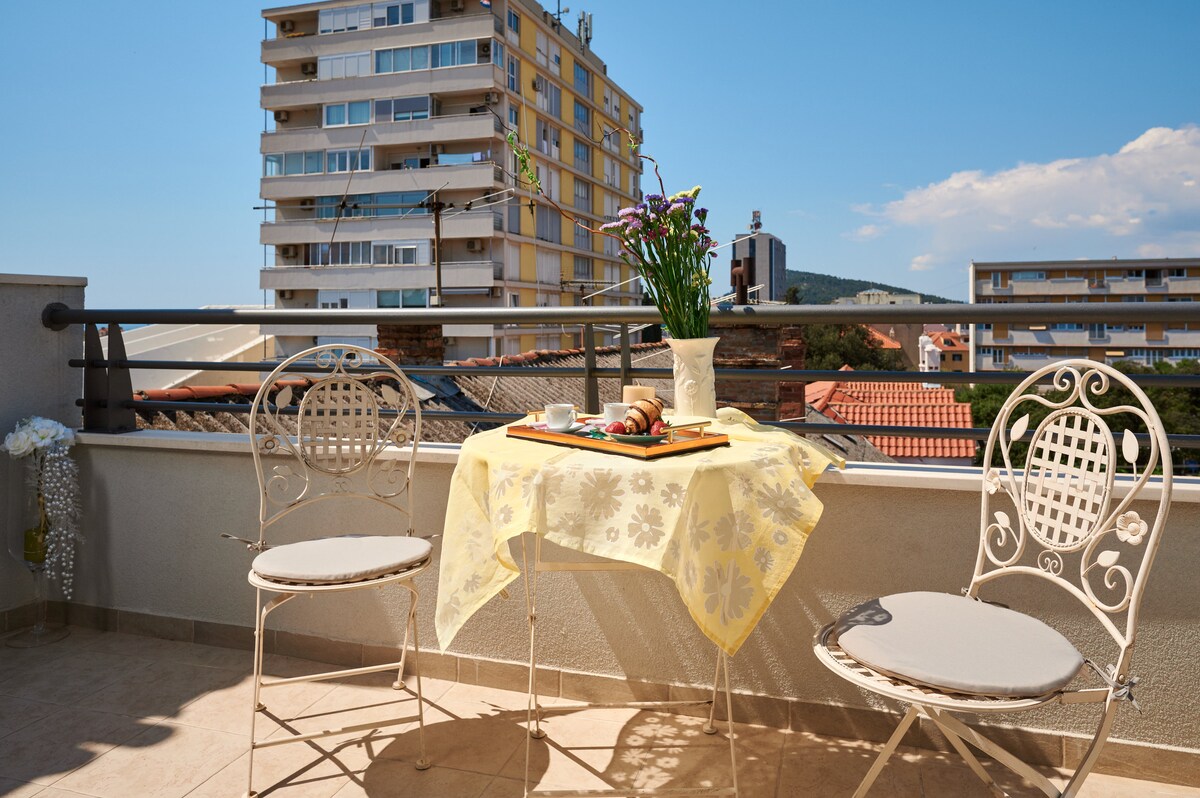Moderne Wohnung mit Dachterasse im 4. Stockwerk, befindet sich in der Nähe aller wichtigen Orte der Stadt. Der historische Stadtkern, der Busbahnhof und der Fährhafen sind alle leicht zu Fuß erreichbar. Bekannte Stadtstrände sind nur einen kurzen Spaziergang von Ihnen entfernt. Ebenfalls sind in Notfällen das örtliche Krankenhaus, sowie eine Notfallapotheke unmittelbar in der Nähe. Die Wohnung bietet Komfort, Luxus und Privatsphäre. Ein heimeitliches Ambiente ermöglicht einen entspannten Urlaub