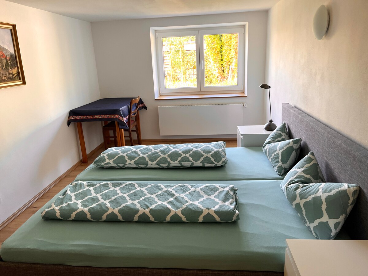 In unserem Haus ist für euch die DG Wohnung frei. Sie besteht aus 1,5 Zimmern plus eigenem Bad. Möglichkeit zum Kaffee kochen, Mikrowelle, Kühlschrank & Fernseher sind auf dem Zimmer sowie ein Arbeitsplatz. Zusätzliche Gebühren gibt es nicht. Der große Garten mit Möglichkeiten zum grillen kann gerne genutzt werden.