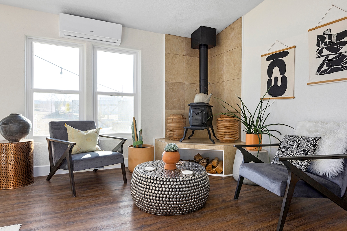 U ZATVORENOM PROSTORU - 2 Mini Split za klima-uređaj i grijanje - Wi-Fi od 15 mbps • Mašina za pranje/sušenje veša - RO sistem filtera za vodu (visokokvalitetna voda za piće) - Slatka kuhinja potpuno opremljena - Jedinstven dizajn - Trpezarijski sto za 4 osobe - 2 bračna kreveta - Renovirano kupatilo/popločani tuš - Gramofon - Horseshoe Court NA OTVORENOM - ognjište s propanom i roštilj - hidromasažna kada - vanjski trpezarijski sto - Kaubojska kada (sezonska) - Viseća ležaljka - Prekrasni izlasci, zalasci sunca i zvjezdane noći - Vrlo malo komšija i svjetlosnog zagađenja - Prljavi putevi za avanture i šetnje