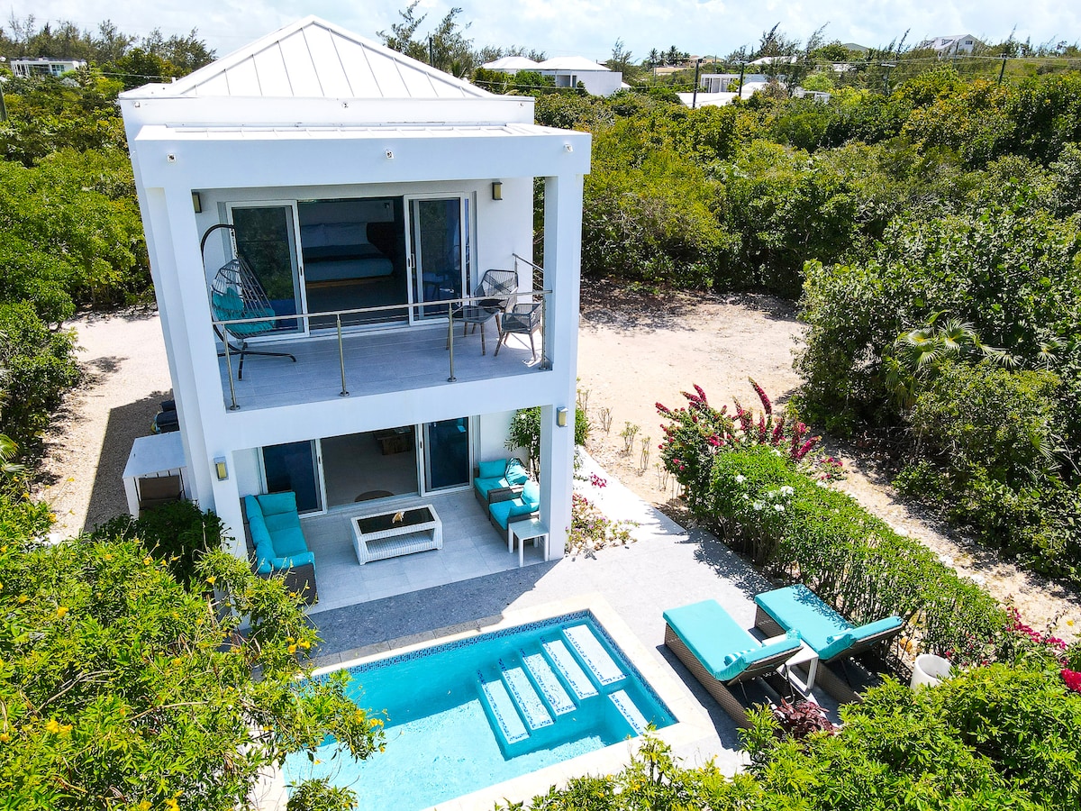 Moderna vila blizu plaže s vlastitim privatnim bazenom. Može spavati do 4 odrasle osobe u odvojenim sobama. Samo 250 koraka od azurno plave vode i mekog bijelog koralja na plaži Grace Bay. Na mirnoj lokaciji izvan ulice. Savršeno za romantični odmor. Sa svojim mirnim osamljenim vrtom i bazenom, mnogi naši gosti dolaze da proslave rođendane, godišnjice i medene mjesece u potpunoj privatnosti. Prošetajte do ronjenja s maskom i disalicom na koraljnom grebenu za 3 minute i nekoliko restorana. U blizini se nalaze veliki supermarket i prodavnice.
