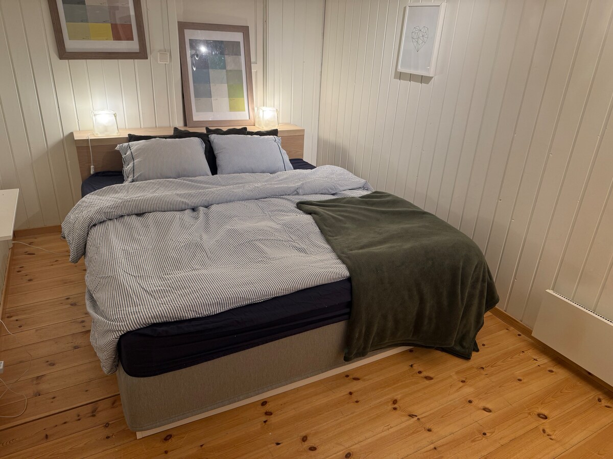 Ny leilighet på 55 m2 med to soverom. Balansert ventilasjon. Termostat på alle rom. Romslige dobbeltsenger (180 cm bredde) på begge soverommene. Sovesofa med bredde på 140 cm kan res opp til en eller to personer i tillegg. Sjøutsikt og utgang til hage. Rolig og fredelig nabolag med lekeplass og turområder like ved. Kort vei til butikk og bussholdeplass. Det tar omkring 20 minutter med buss til sentrum.