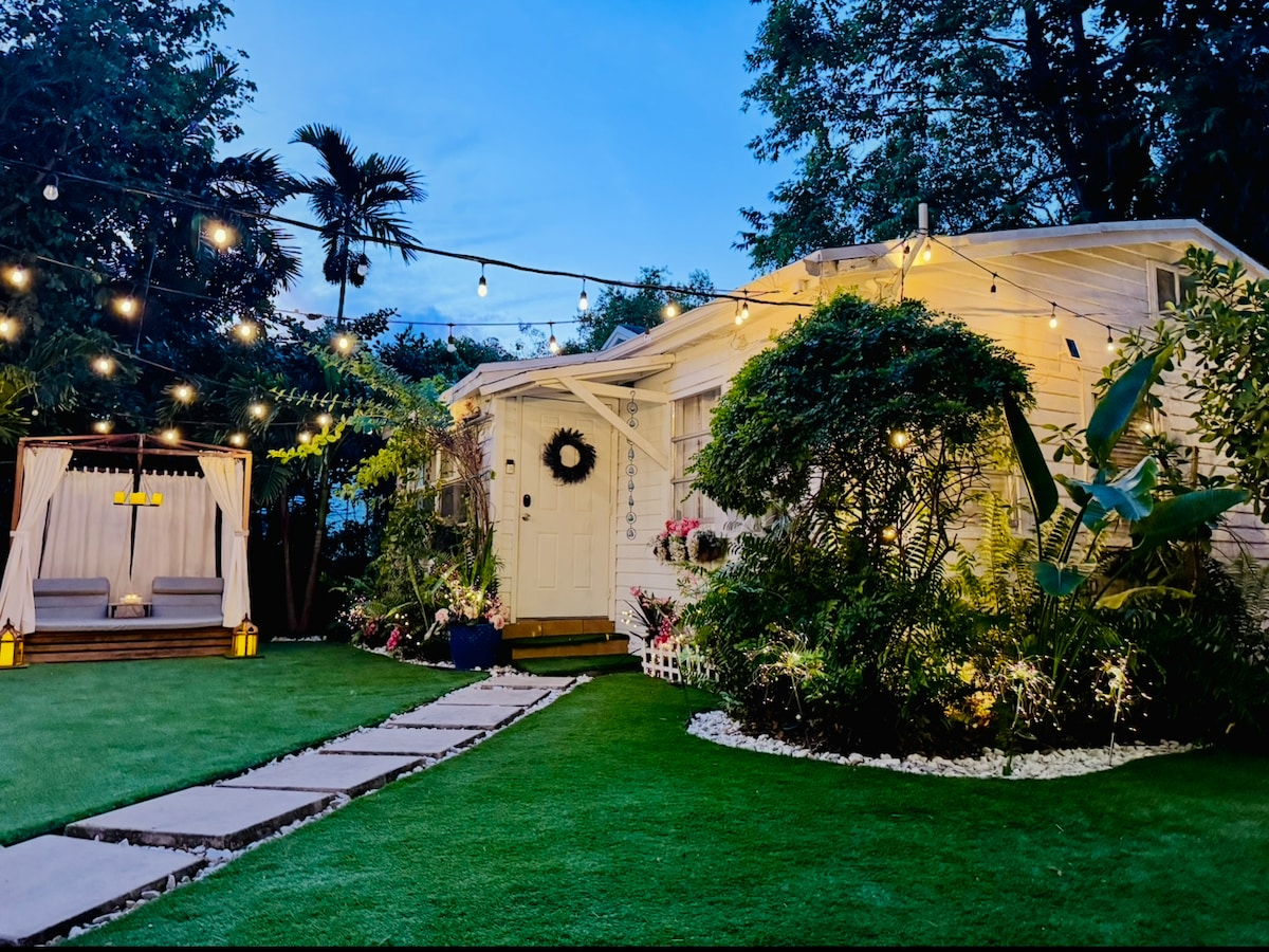 Experience natural luxury at this boutique cottage in the heart of Coconut Grove — a private tropical retreat surrounded by lush palms and vibrant gardens. Walk to the Marina, cafés, bayfront parks & CocoWalk. Perfect for couples or solo travelers, it offers a full kitchen, washer/dryer, free gated parking & a spacious deck with string lights. A top-rated, stand-alone escape near UM — your serene, central Miami hideaway for relaxation & connection.