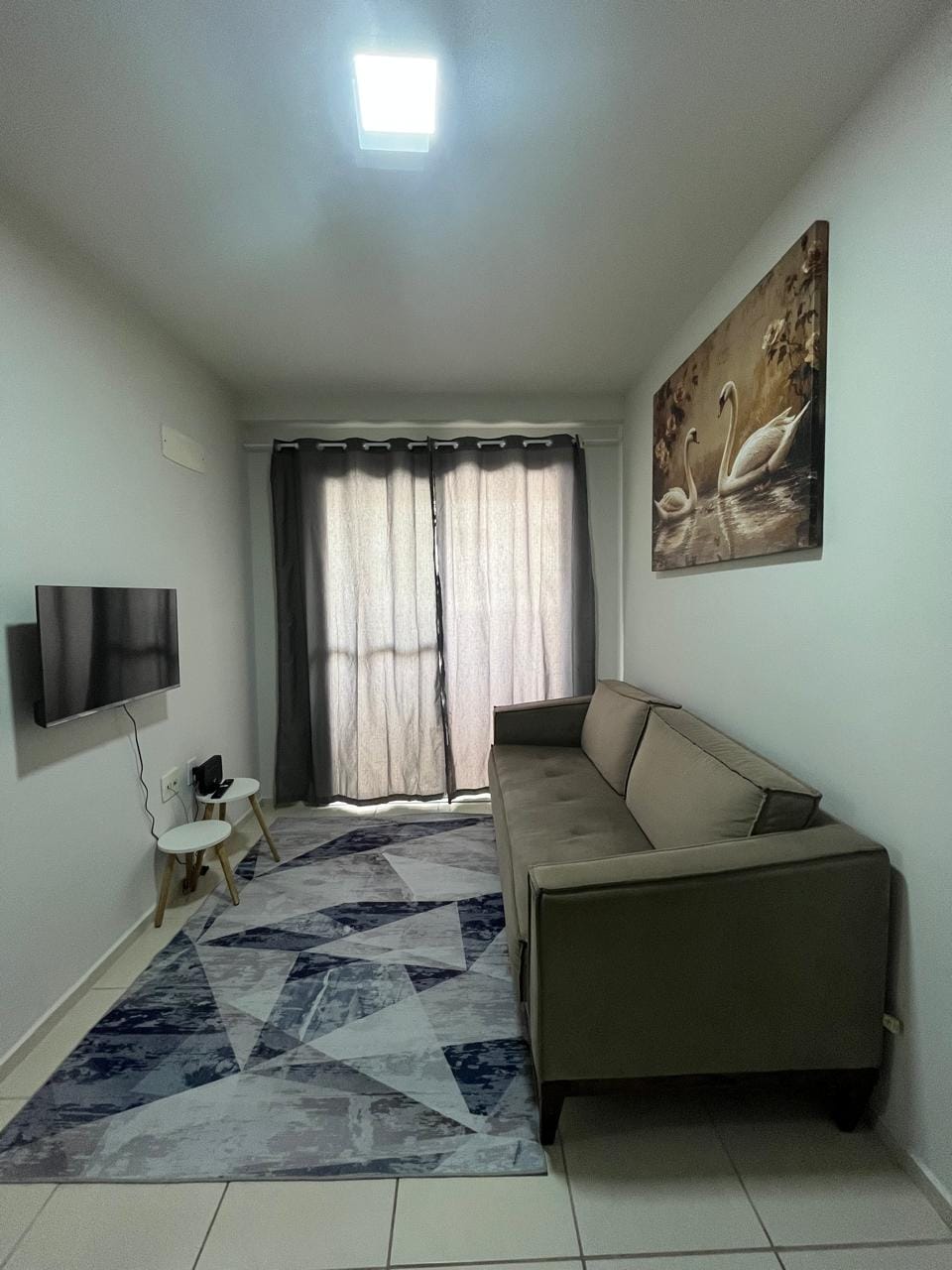 Studio apartman od 39 m2, s pogledom na ulicu, u sjeni, bračni krevet + kauč na razvlačenje. Ugošćavanje 2 odrasle osobe i 2 djece ili do 3 odrasle osobe kako biste se osjećali ugodno. Klimatizovan i sa svim osnovnim priborom, besplatan parking. Smješten u najboljoj regiji Marília , pored Avenide das Esmeraldas, u blizini supermarketa, barova, restorana, salona ljepote i apoteka. Kondominij zgrade također ima zajednički radni prostor, teretanu i besplatan prostor za pranje veša.