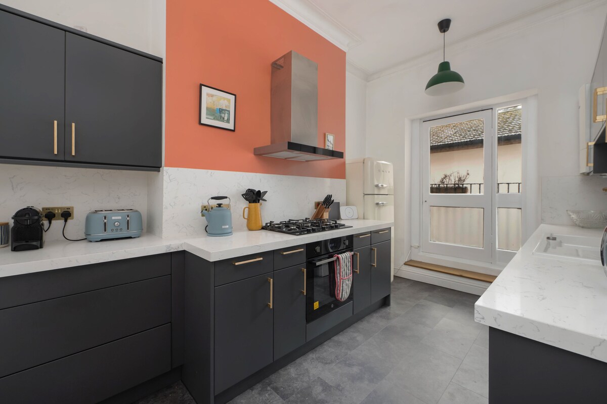Divite se zadivljujućem pogledu na more od 180 stepeni, posmatrajte kako ribarski brodovi napuštaju luku, a kasnije se vraćaju sa svojim ulovom. Divite se i uživajte u elegantnom i udobnom retro uređenju interijera s Art Deco detaljima. Gledajte morske ptice uz kafu s dvogledom s visokim napajanjem, pripremite obilan doručak, a zatim napunite baterije Clifftopom, lukom ili šetnjom uz plažu. Vjerovatno najbolji pogled u Folkestoneu, panorama koju možete vidjeti, promatrati izlazak i zalazak sunca iznad Engleskog kanala. Gosti Devine View-a imaju pristup cijelom stanu na ekskluzivnoj osnovi, a tu su i zajedničke stepenice koje služe srednjem stanu i stanu Devine View. Kada je to moguće, volimo dočekati naše goste i ukratko vas upoznati sa stanom, živimo u kratkoj šetnji, tako da smo obično dostupni ako je gostima potrebna pomoć ili savjet. Devine View se nalazi na popularnoj istočnoj litici koja gleda na Folkestone Harbour Arm. Pet minuta hoda do područja luke ili prekrasne šetnje liticama nalaze se na pragu. Širok izbor restorana i barova nalazi se nadohvat ruke. Wear Bay Road se nalazi u stambenom području s besplatnim neograničenim parkiranjem na ulici. Autobuska stanica se nalazi za dnevne usluge (ne uključujući nedjelju) u blizini objekta, što gostima omogućava da putuju u centar grada preko luke/obale. Luka/obala je udaljena samo pet minuta hoda nizbrdo ili stepenicama. Red Arrows se prikazuje i još mnogo toga u nedjelju, 30. juna. Gledajte ih s balkona! Nasuprot stanu postoji besplatan neograničen parking za automobil. Stan ima Wi-Fi povezan.