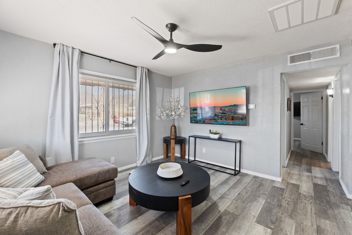 Ovaj preuređeni stan 1 BR nalazi se u neposrednoj blizini centra grada, zapada i istočnog El Pasa, bolnica, restorana itd. Jedinica ima 1 bračni krevet za dvije osobe, 1 kauč na razvlačenje za 1 osobu, mini split klima-uređaje za vašu udobnost, potpuno opremljenu kuhinju, trpezariju sa stolom za 4 osobe i spavaću sobu s kaučem na razvlačenje, vešeraj dostupan za boravke od više od 7 dana i pametni TV od 50’s BESPLATNIM Wi-Fi-jem.