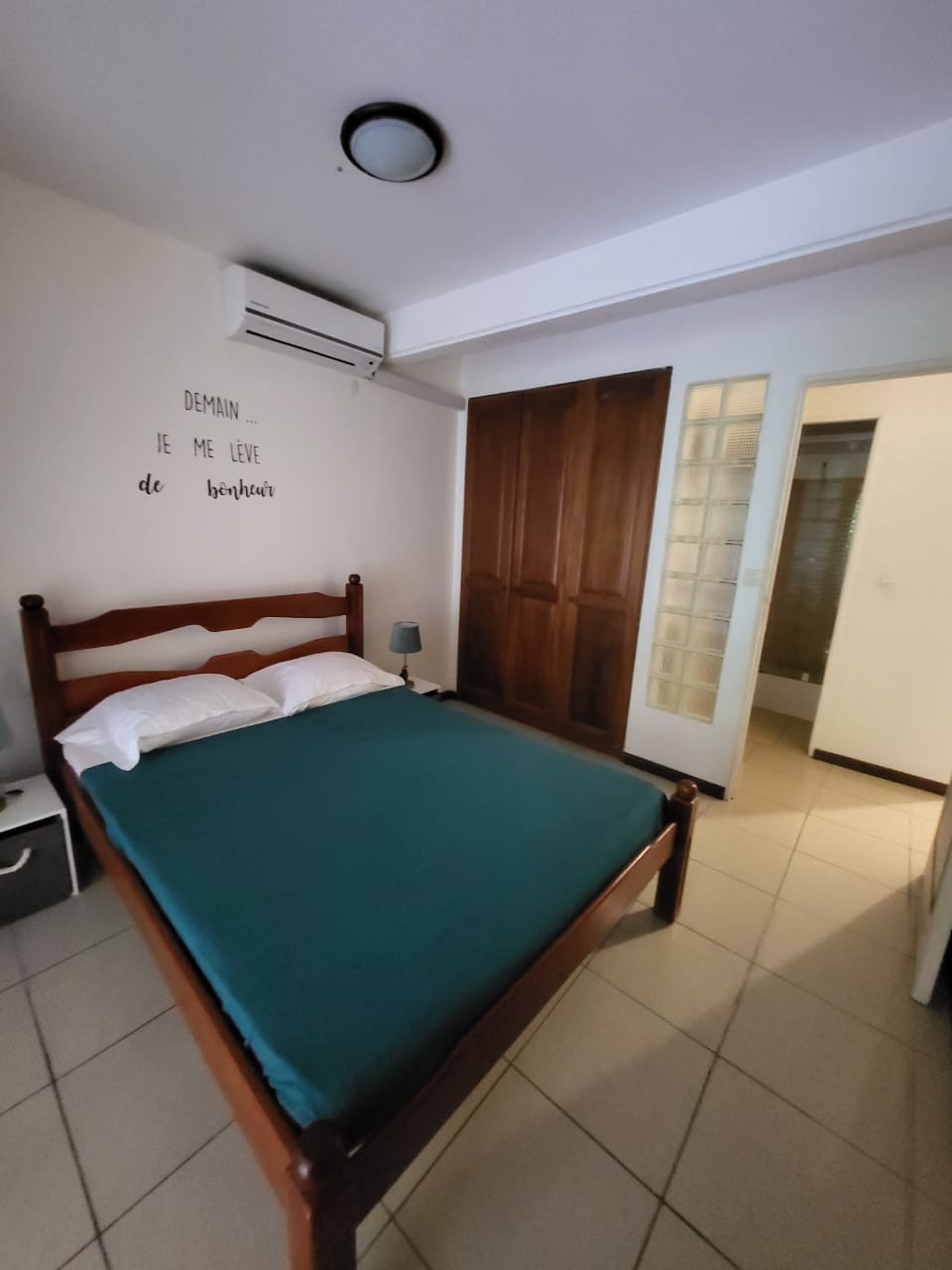 F2 en bas-de-villa à 5 min de l’aéroport dans résidence calme et sécurisée. Idéal pour séjour en SOLO ou escapade en DUO. Grande terrasse aménagée. Accès exclusif à la piscine privée. Cuisine totalement équipée, plaque vitrocéramique et petits électroménagers. TV, Canal Satellite, Wifi. Chambre climatisée, draps & serviettes inclus. Lit pour bébé disponible. Salle d’eau (avec WC) attenante et fermée. AUCUNE SORTE DE FÊTE AUTORISÉE. PAS DE VISITEURS. PAS D’ANIMAUX.