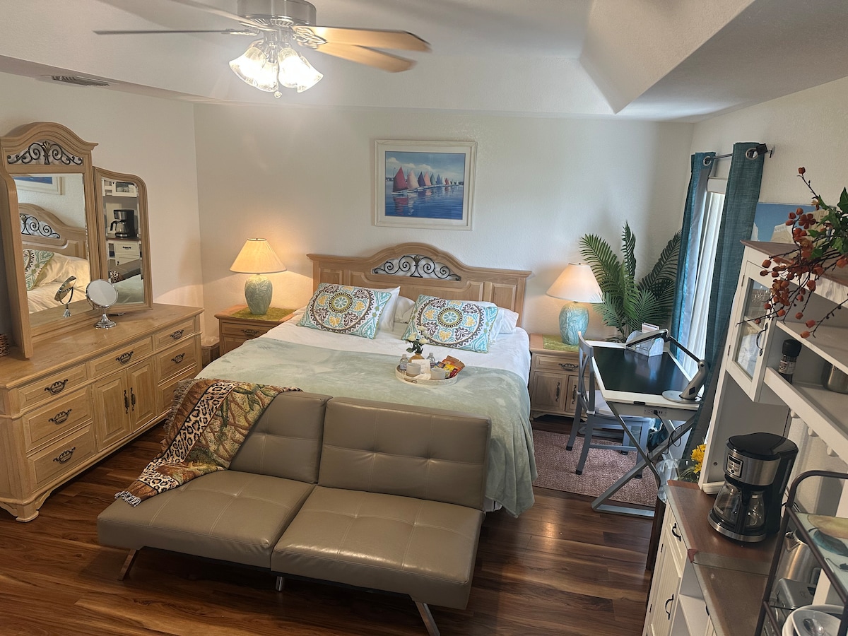 Prekrasna novouređena privatna spavaća soba s bračnim krevetom i kupatilom. Studio apartman na 2. spratu s vanjskim ulazom. Sadrži Smart TV, ormar, aparat za kafu Keurig, mali frižider/zamrzivač, mikrovalnu pećnicu i trpezarijski sto. Samo NEKOLIKO BLOKOVA do najbolje plaže u Napulju na Floridi gdje su zalasci sunca božanstveni na plaži Vanderbilt. Jednostavna šetnja do Ritz Carlton Naples Beach Resorta i najbolje večere uz okean, aktivnosti na plaži, kajaka, skutera, SUP-a, teniskih terena i iznajmljivanja brodova.