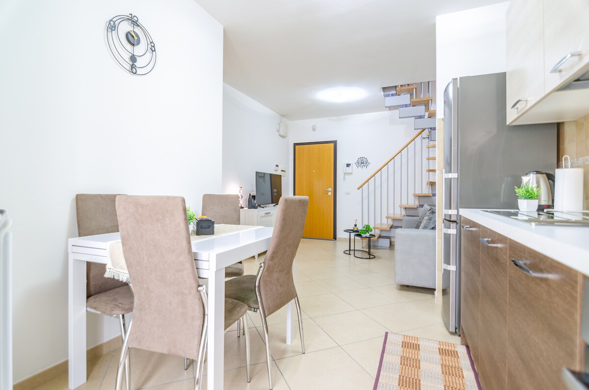 Smješten u mirnom kvartu Settecamini, stan je idealan za parove, turiste i radnike. Ima sobu s francuskim krevetom i prostranim ormarom, dnevni boravak s kaučem, TV-om i radnim prostorom. Kuhinja je dobro opremljena. Kupatilo ima WC školjku, bide i kadu za tuširanje. Vrhunac je privatna terasa, savršena za opuštanje ili objedovanje na otvorenom, sa stolom za 4 osobe i ugodnim pogledom na područje. U blizini je dostupan i besplatan parking.