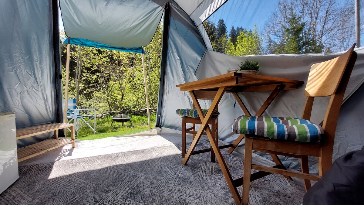 Uživajte u opremljenom šatoru u našem kampu na farmi. U potpunom miru, u blizini parkova puževa i svježine potoka, provest ćete neobičnu noć u netaknutoj prirodi. Imate samo svoje stvari za planiranje, šator je opremljen zračnim madracem, jorganima i jastucima. Možete kuhati i uživati u zajedničkim prostorijama ispod namještene šupe. Tu su i obroci i doručak, kao i događaji koji se nude.