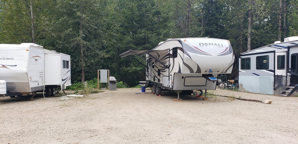 Planine vas zovu! 🏔️ Otkrijte vodopade, vožnju kajakom, ribolov i tople bazene udaljene samo 8 minuta! Vaša četverogodišnja avanturistička baza u blizini Three Valley Gapa, savršeno smještena između Revelstokea i Sicamousa. Boravite u udobnoj prikolici s modernim aparatima, jastucima, dekama i potpunim grijanjem za hladne noći. Čekaju vas beskrajne staze, zadivljujući pogledi i nezaboravne uspomene! Tišina nakon 23:00. PEĆ RADI ODLIČNO! :)