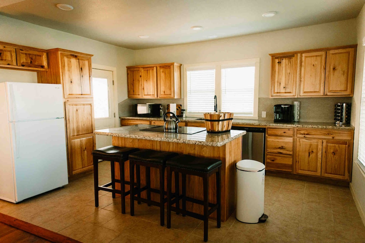 Opustite se s cijelom porodicom u ovoj mirnoj kući na ranču na 50 prekrasnih hektara. Uživajte u jutarnjoj kavi u stražnjem dvorištu s mirnim pogledom na naše dvorište. Za jedinstveni doživljaj, popnite se na Longhorn Lookout i uživajte u neometanom pogledu na imanje iz zraka. Sa neobičnom vinarijom samo 7 minuta niz cestu, nećete imati problema da popunite svoje vrijeme daleko od kuće! Pogledajte vodeni park Splashway za više zabavnih porodičnih avantura tokom vašeg boravka.