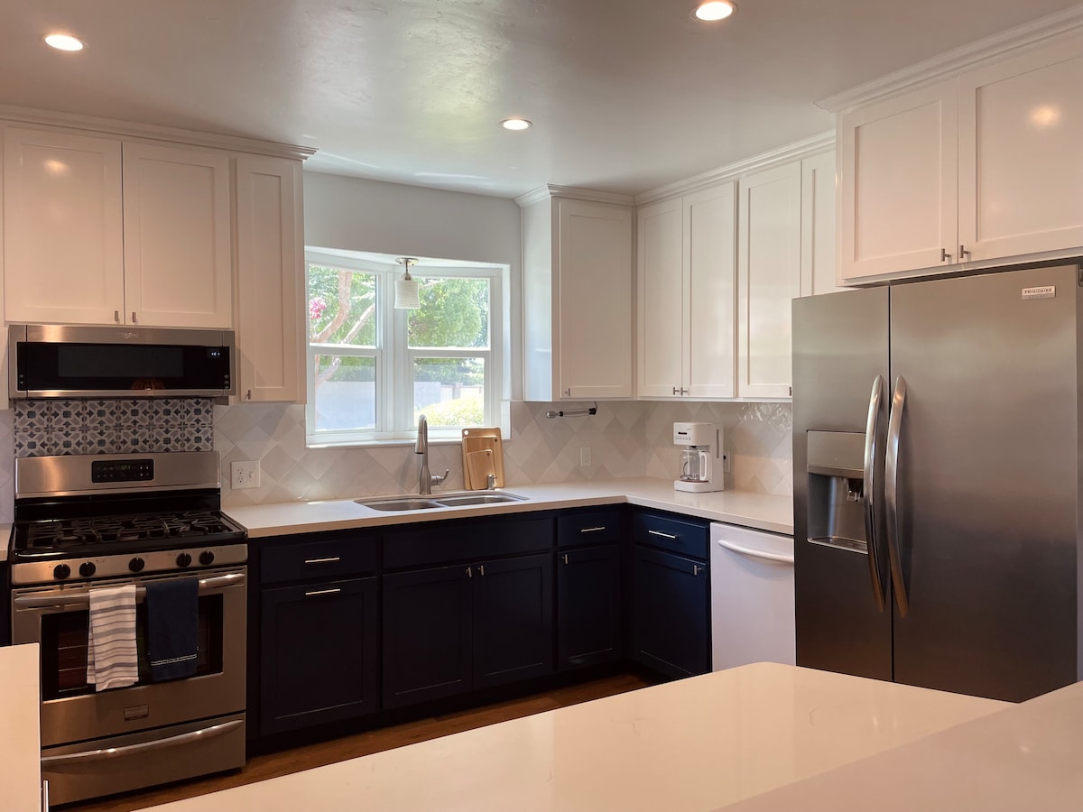 Nadograđeno 2 kreveta/1 kupatilo, novi uređaji i namještaj, 3 min od Hwy99, 10 min do aerodroma, 70 min pristup nacionalnim parkovima (Yosemite, Sequoia, Kings Canyon), blizu trgovina i restorana u povijesnom okrugu Tower, ograđena prednja i stražnja dvorišta, 300 MB Wi-Fi, drveni podovi, 65" TV w. DIRECTV + Netflix, TV u spavaćoj sobi, propanski roštilj, svi kuhinjski potrepštine, uključujući blender, aparat za kafu. 1 bračni krevet (širine 150–179 cm), 1 krevet na sprat s dva odvojena kreveta i 1 kauč na razvlačenje (širine 150–179 cm). 3 automobila sigurno parkirana unutar metalne ograde