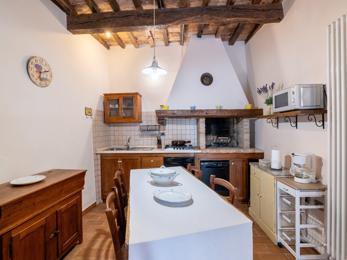 Pobjegnite u valovita brda Umbrije u ovoj ažuriranoj seoskoj kući (90 m2 na 2 sprata) koja zadržava svoj prvobitni šarm. Smještaj ima klasične svodne plafone s gredama, originalnu kamenu završnu obradu, unutrašnji kamin na drva, privatni ulaz i privatnu vrtnu terasu. Zajednički bazen ima veliki prostor za sunčanje. Ako vaši omiljeni datumi više nisu dostupni, pogledajte naš tirkizni stan. Tirkiz: https://www.airbnb.com/rooms/plus/9430389.