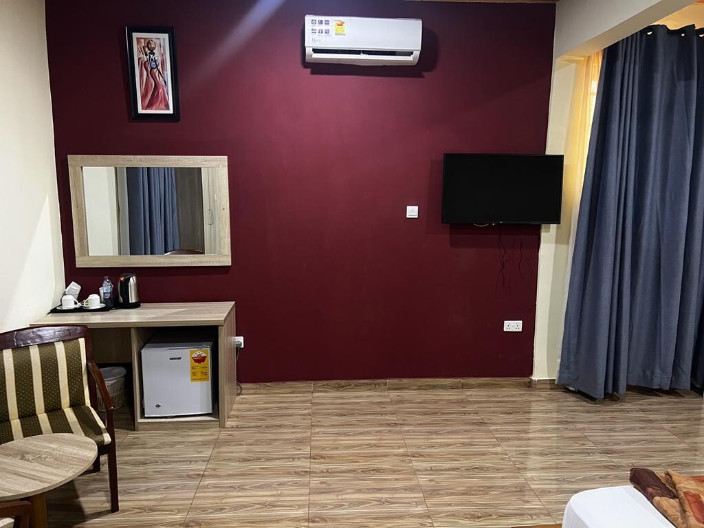 Uživajte u udobnosti i stilu u GSP Hotelu u Accri uz našu prostranu Deluxe sobu, dizajniranu isključivo za odrasle koji traže opuštanje i praktičnost. Soba ima udoban bračni krevet, moderan namještaj, klima-uređaj, brzi Wi-Fi, TV ravnog ekrana i privatno kupatilo s besplatnim toaletnim potrepštinama. Gosti imaju koristi od restorana u sklopu objekta, 24-satne usluge recepcije, svakodnevnog čišćenja i sigurnog parkinga. Idealno za poslovne ili privatne boravke u mirnom, profinjenom okruženju.