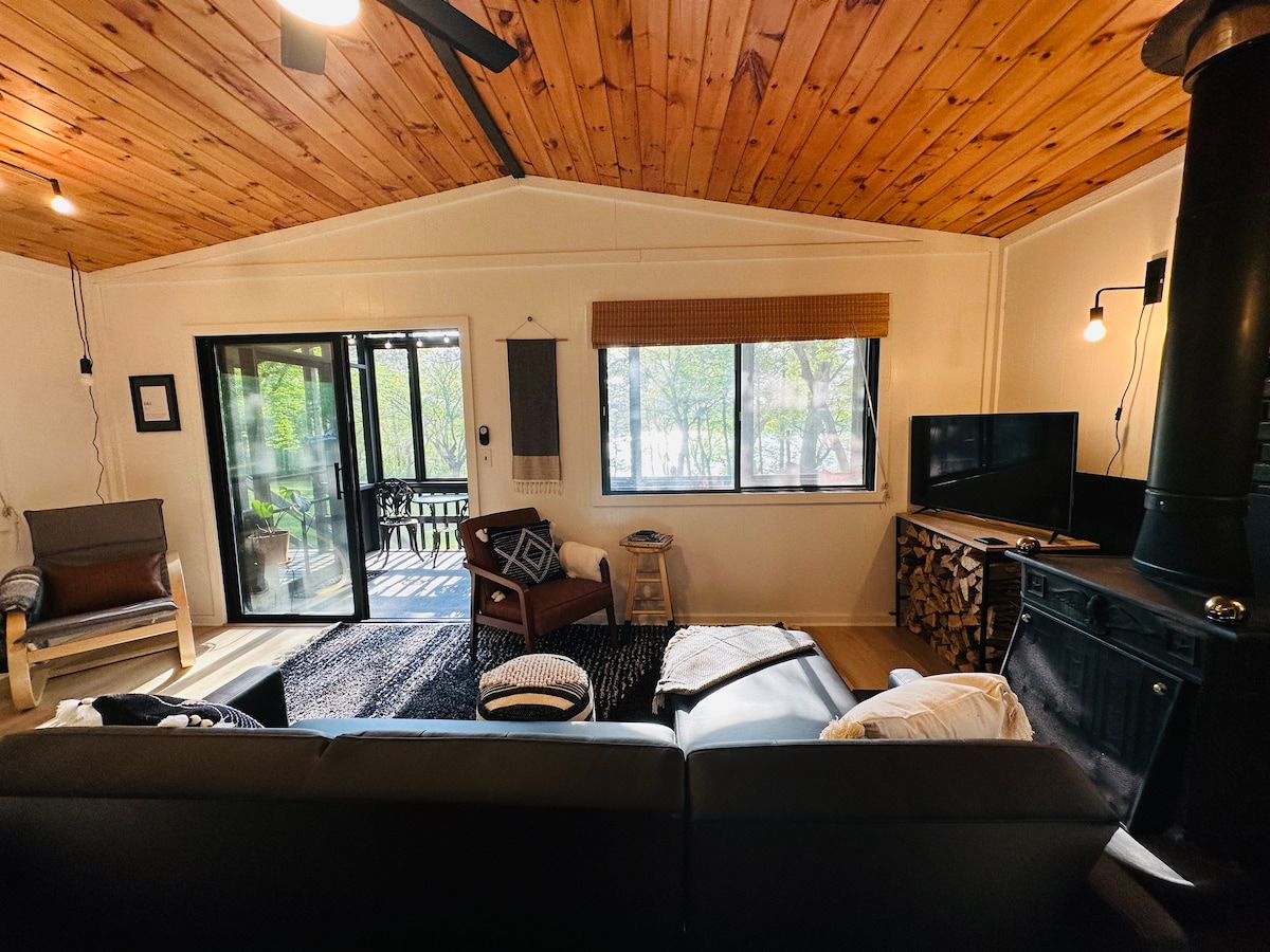 Ova rustikalna brvnara smještena je na 2 hektara na Long Lakeu. Prvobitna struktura trupaca datira iz 1858. godine s novim dodatkom izgrađenim od prenamijenjenog drveta. Uživajte u mirnom utočištu ili romantičnom odmoru pored kamina. Provedite neko vrijeme pored jezera uživajući u svježem zraku i divljini ili se ponovo povežite s porodicom oko stola igrajući igre. Naša brvnara je savršeno mjesto za ponovno uključivanje i ponovno povezivanje.