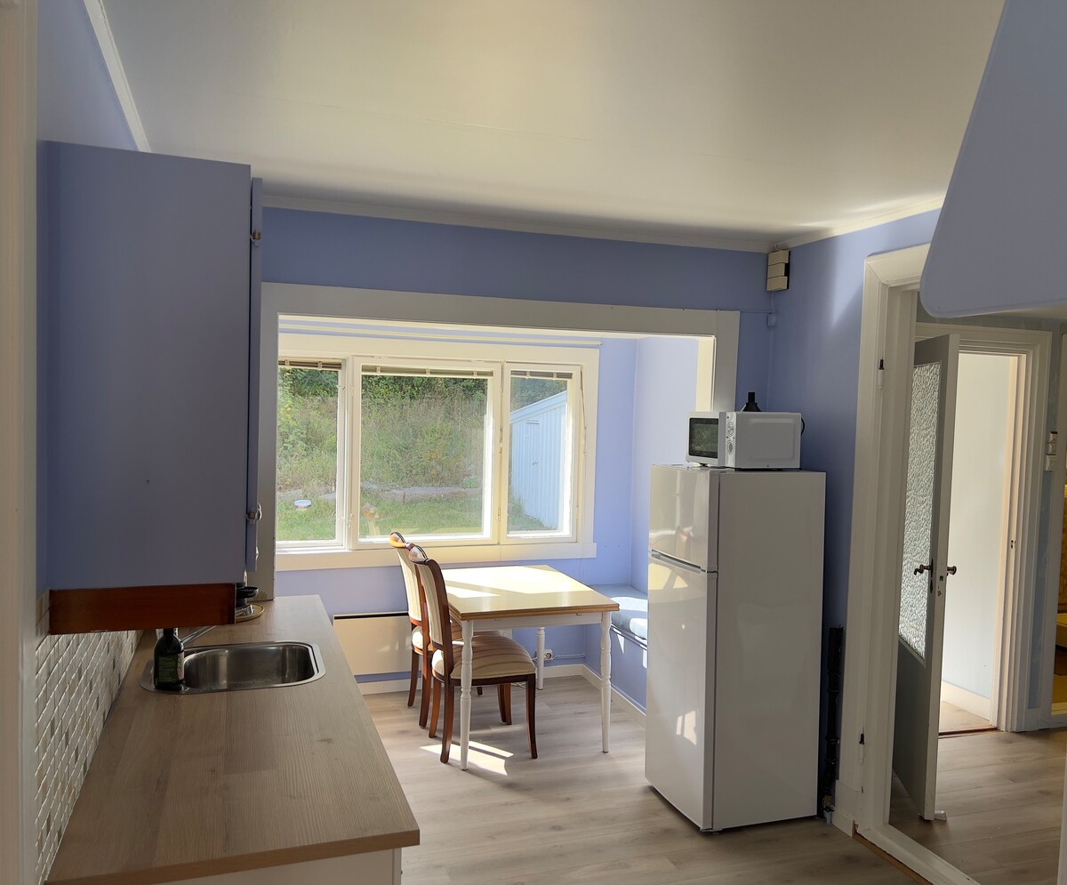 Podrumski stan u granitnoj kamenoj kući iz 1953. godine. Dobra atmosfera. Samo 20 minuta hoda od željezničke i autobuske stanice. Privatni ulaz. Novo kupatilo i mala kuhinja. Internet i TV. Kuća se nalazi u mirnom okruženju i ima mnogo mogućnosti za šetnje u šumi i kupanje u moru. Centar Fredrikstada i univerzitet udaljeni su samo 20 minuta hoda. 5 minuta do besplatnog trajekta koji vas vodi do starog grada ili centra grada. Želim da se svi gosti osjećaju dobrodošlo i kao kod kuće. Kupanje u kadi po dogovoru.