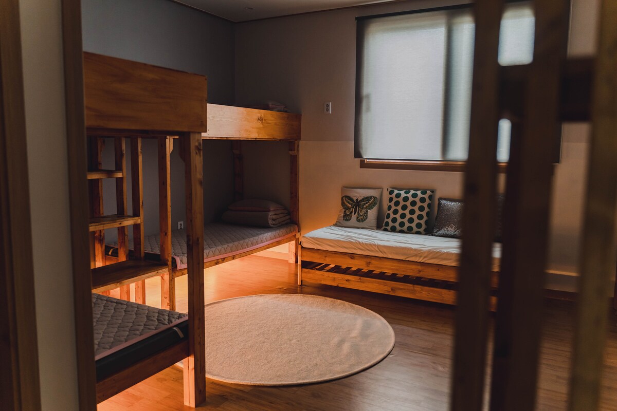 Pojedinačne sobe s krevetima na sprat koje mogu primiti do 6 osoba. Preporučuje se grupnim putnicima kao što su pojedinačni toaleti, TV, mini frižider itd. Yangyang Hot Place Population, Jukdo Guesthouse Magic Carpet Ride. Dvokrevetna soba, dvokrevetna soba, porodična soba, spavaonica u stilu različitih vrsta soba. 30 sekundi hoda, najbolja tačka za surfanje na plaži Population Beach je odmah ispred. Nedavno su poredane razne prodavnice kao što su pubovi, noćni klubovi i restorani Yangnidan-gil, tako da također možete uživati u večernjim satima tokom vikenda ili vrhunca sezone. Gosti uživaju u posebnom popustu za surfanje i posebnom popustu za Upper East Pizza Club!