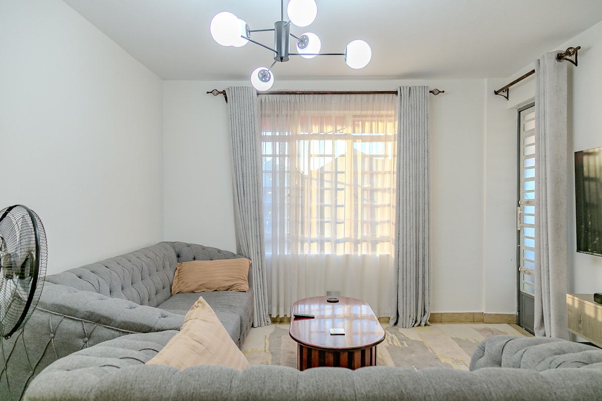 Otkrijte svoj savršeni dom daleko od doma u blizini trgovačkog centra Garden City. Naš Airbnb osigurava besprijekornu zabavu uz Netflix i brzi WI-FI za neprekidno streaming na pametnom TV-u. 24-satni vanjski CCTV nadzor, pružajući spokoj i sigurnost tokom vašeg boravka. Opustite se u mirnom okruženju i uživajte u ugodnom toplom tušu. Kuhinja je u potpunosti opremljena osnovnom opremom. Rezervišite svoj boravak sada za savršen spoj praktičnosti i mira u Nairobiju! 🤗