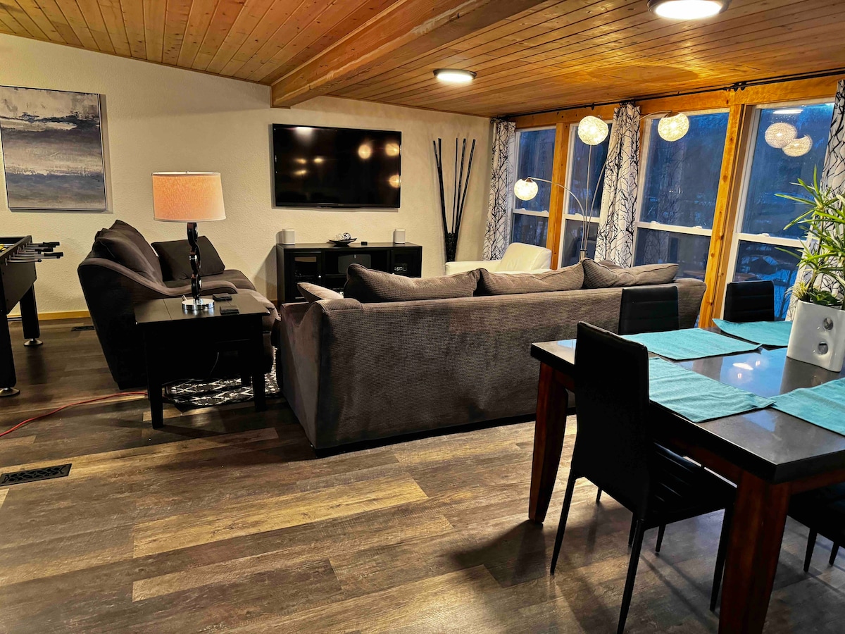 Bring the whole family to the spacious cabin in the woods. Only 55 miles from Boise! Enjoy the geothermal pool to soak your worries away after you play a round of golf at the near by Terrace Lakes Resort. The kids will love the bunk room filled with games and there is another game room in the detached garage with ping pong and shuffleboard. Everything you need to enjoy your family vacation. Come see why we love the Sam Springs so much!