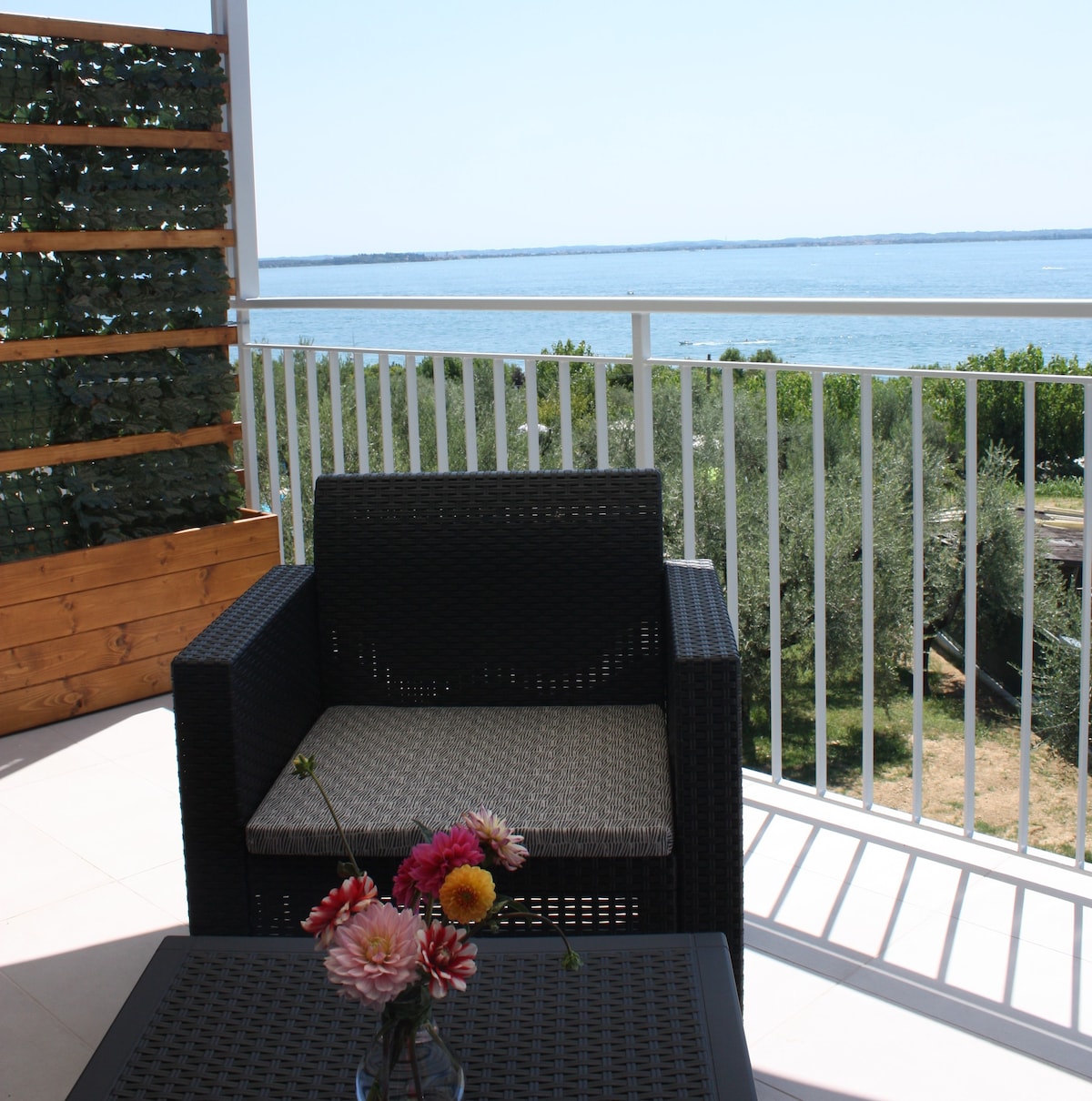 Stan od 54 kvadratna metra s direktnim pristupom bazenu i vrtu, s panoramskim pogledom na jezero Garda. Vrhunska i privatna lokacija. Korištenje vrta i bazena, privatnost i opuštanje u velikim vanjskim prostorima. Moderna konstrukcija iz 2015. godine. Privatni i nezavisni ulaz, dovoljno parkinga. Strogo čišćenje. Potpuna privatnost. Mali kućni ljubimci su dozvoljeni.