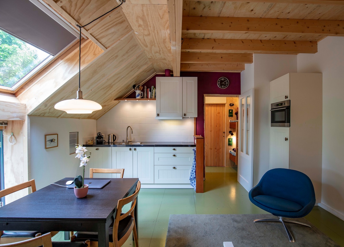 Ova prekrasna mini kuća ima odličan pogled na livade. S terase možete redovno vidjeti a *s kako hodaju i vidjeti patke i labudove kako plivaju. Uživajte u miru na selu ili pronađite grad Groningen. Soba ima kuhinju i kompaktno kupatilo. Kuća se nalazi u dvorištu, a pristup je kroz glavnu kuću. Do prostora za spavanje se može doći stepenicama na izvlačenje. U prostoru za spavanje nalazi se TV s chromecastom.